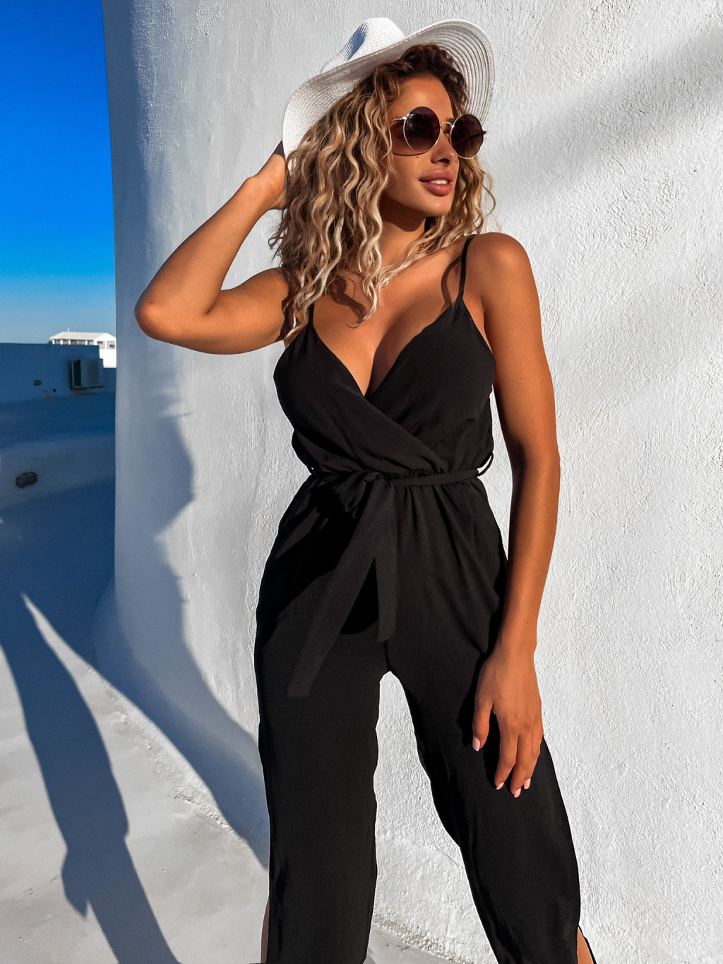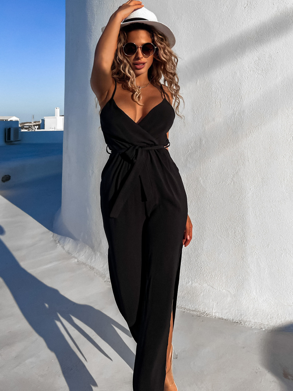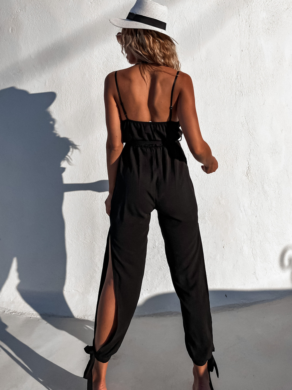 Čierny dlhý overal ROBBIE s rázporkom