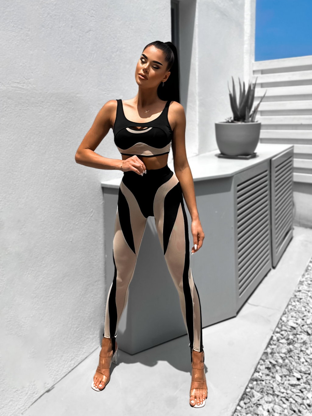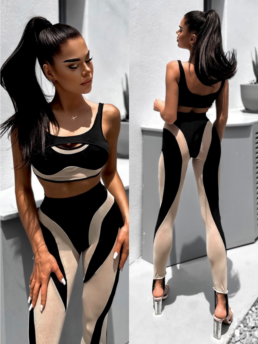 Čierny dvojdielny komplet PHOEBEN s prestrihom