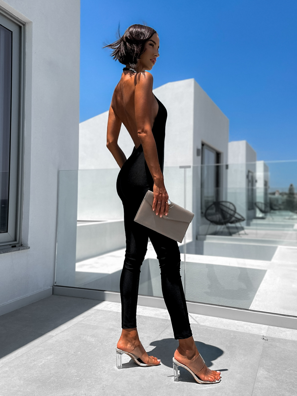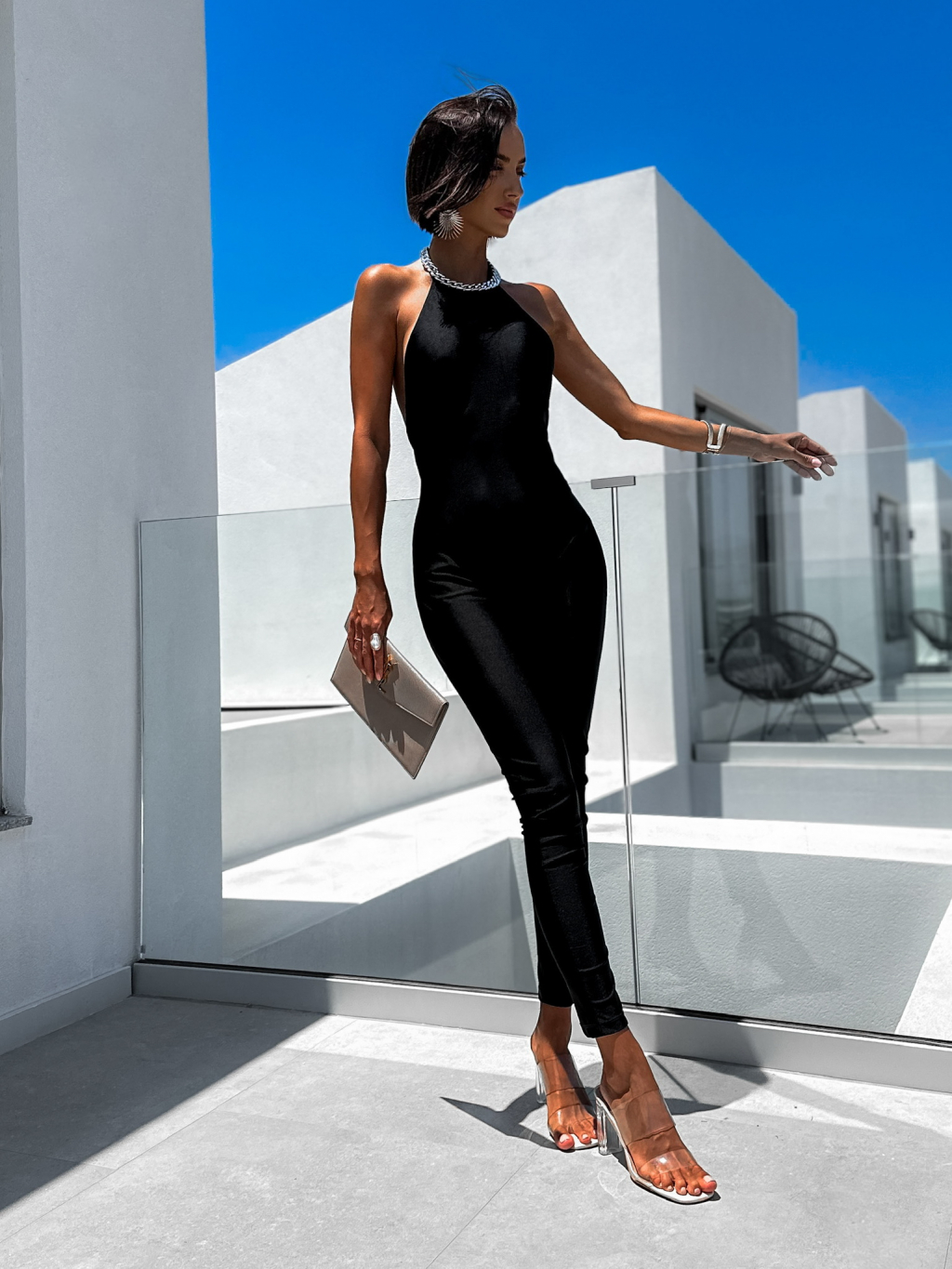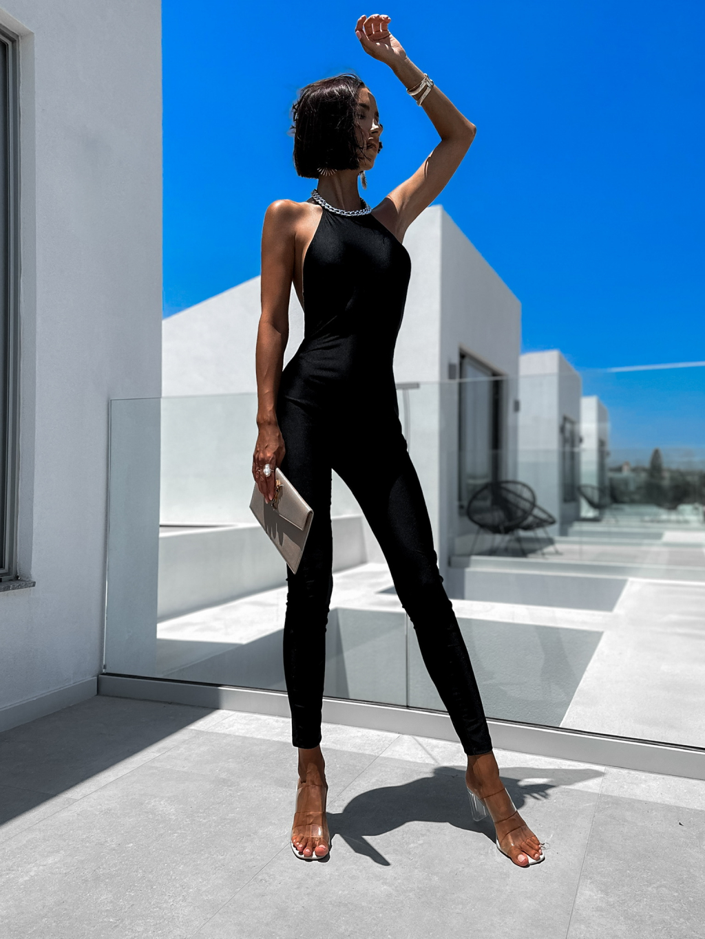 Čierny overal BLUSH so strieborným náhrdelníkom