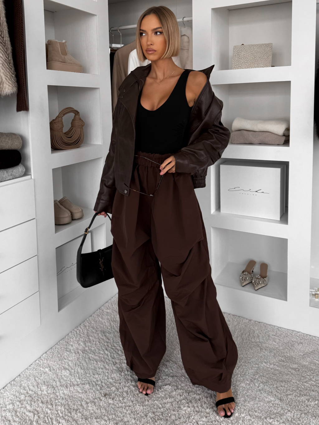 Hnedé bavlnené široké baggy nohavice NOIRCE