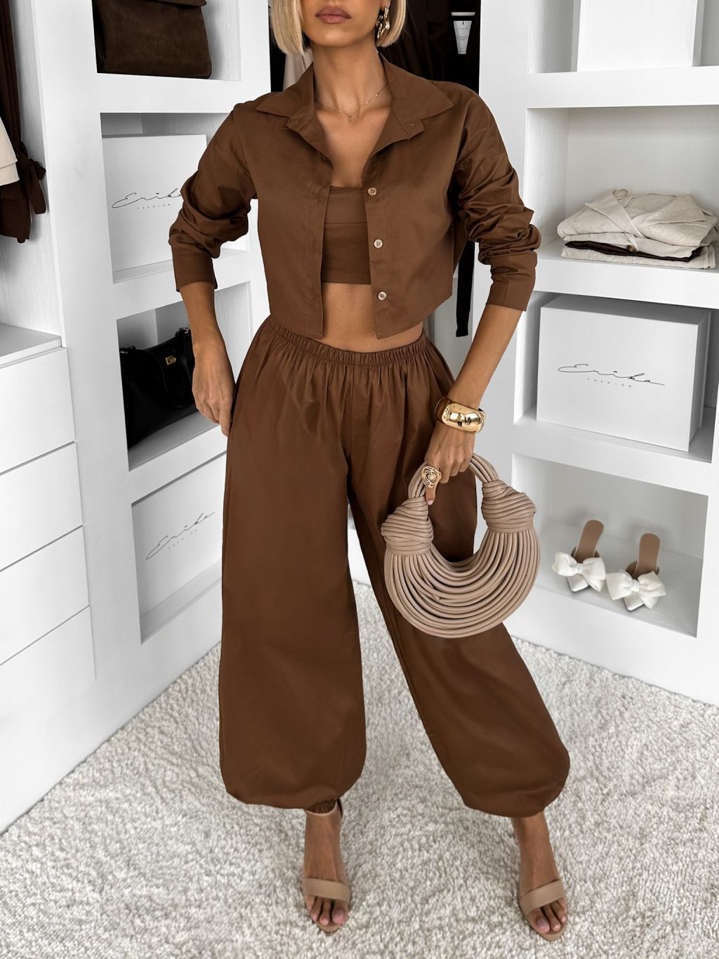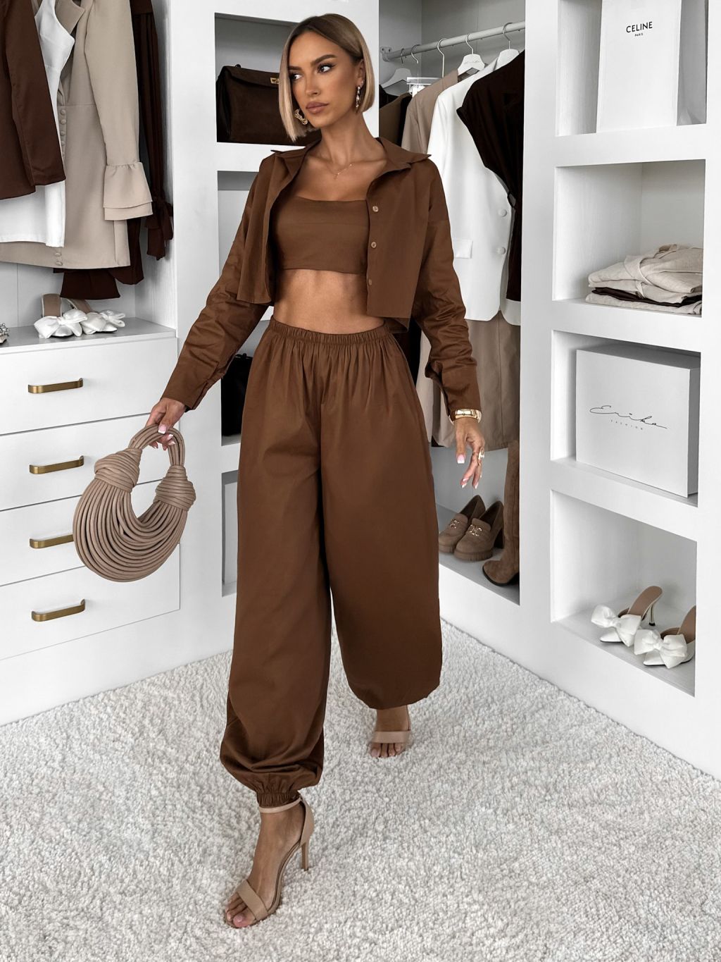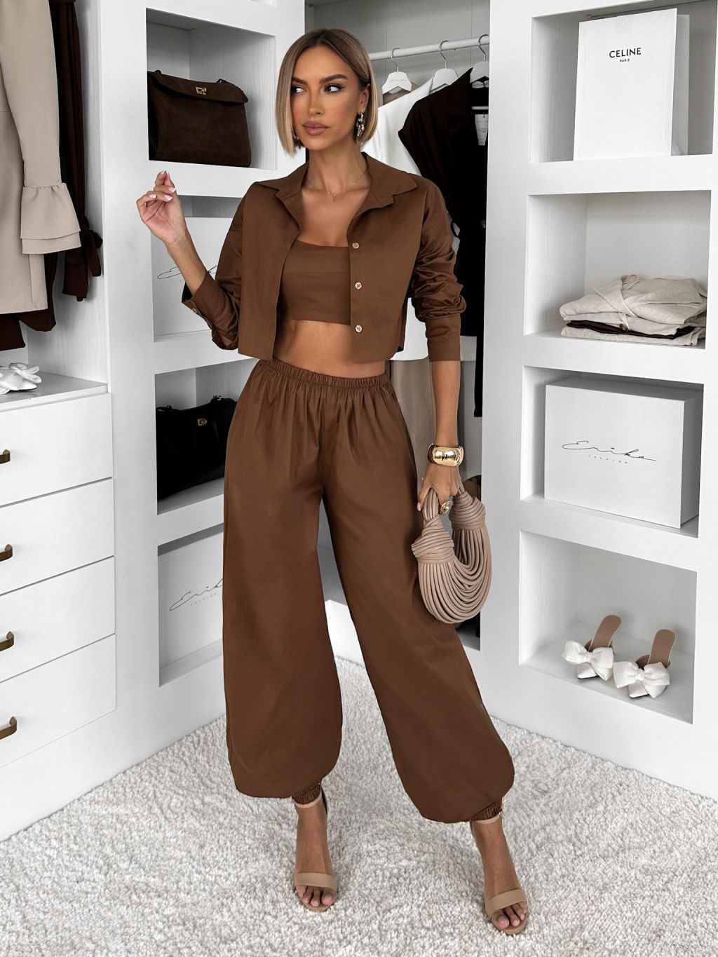 Hnedý bavlnený nohavicový komplet MOCHACA