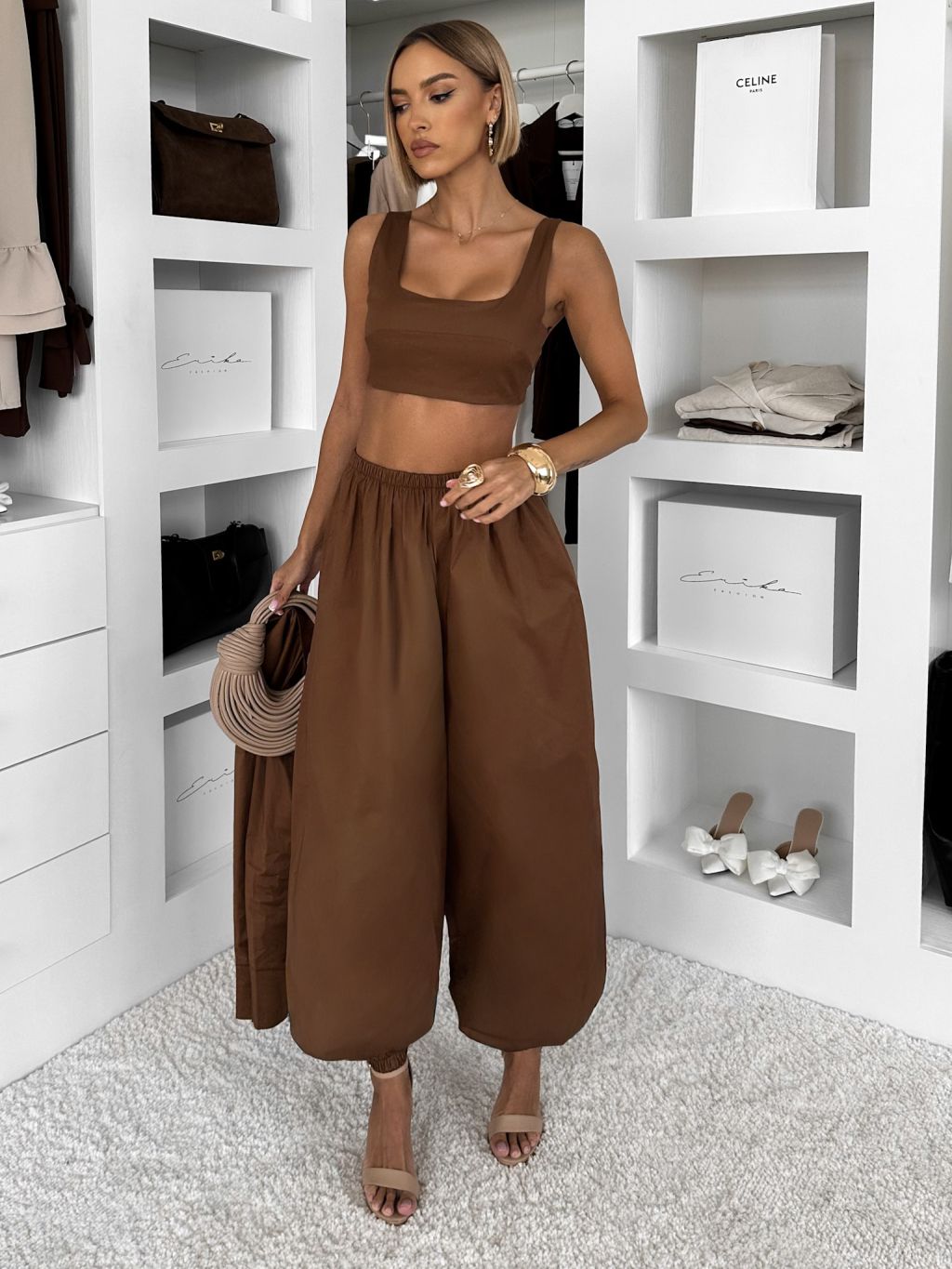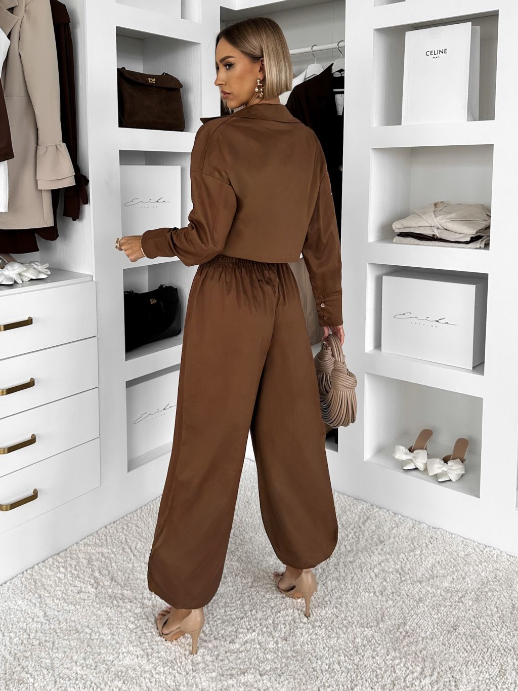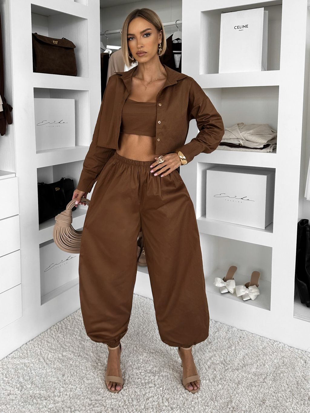 Hnedý bavlnený nohavicový komplet MOCHACA
