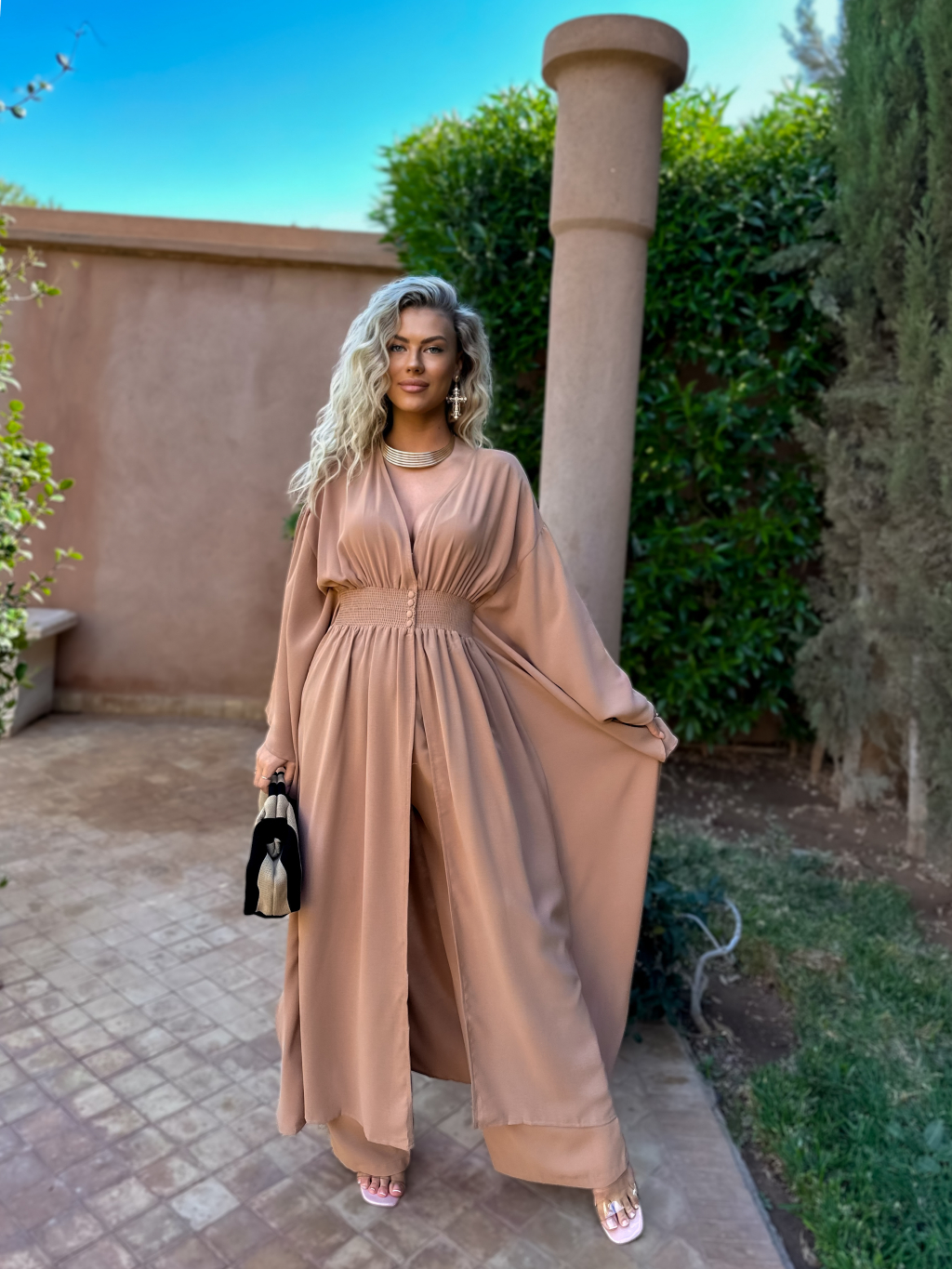 Hnedý elegantný dvojdielny komplet ANILAT