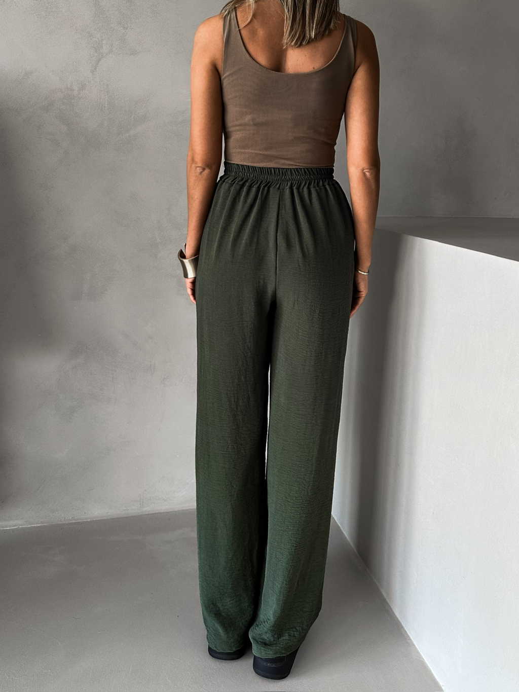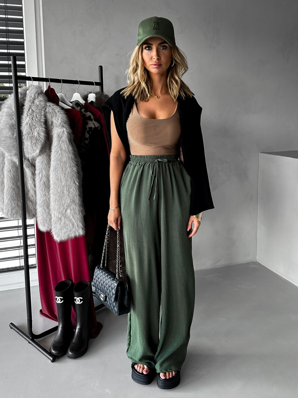 Khaki elegantné nohavice CORAL s rozšírenými nohavicami