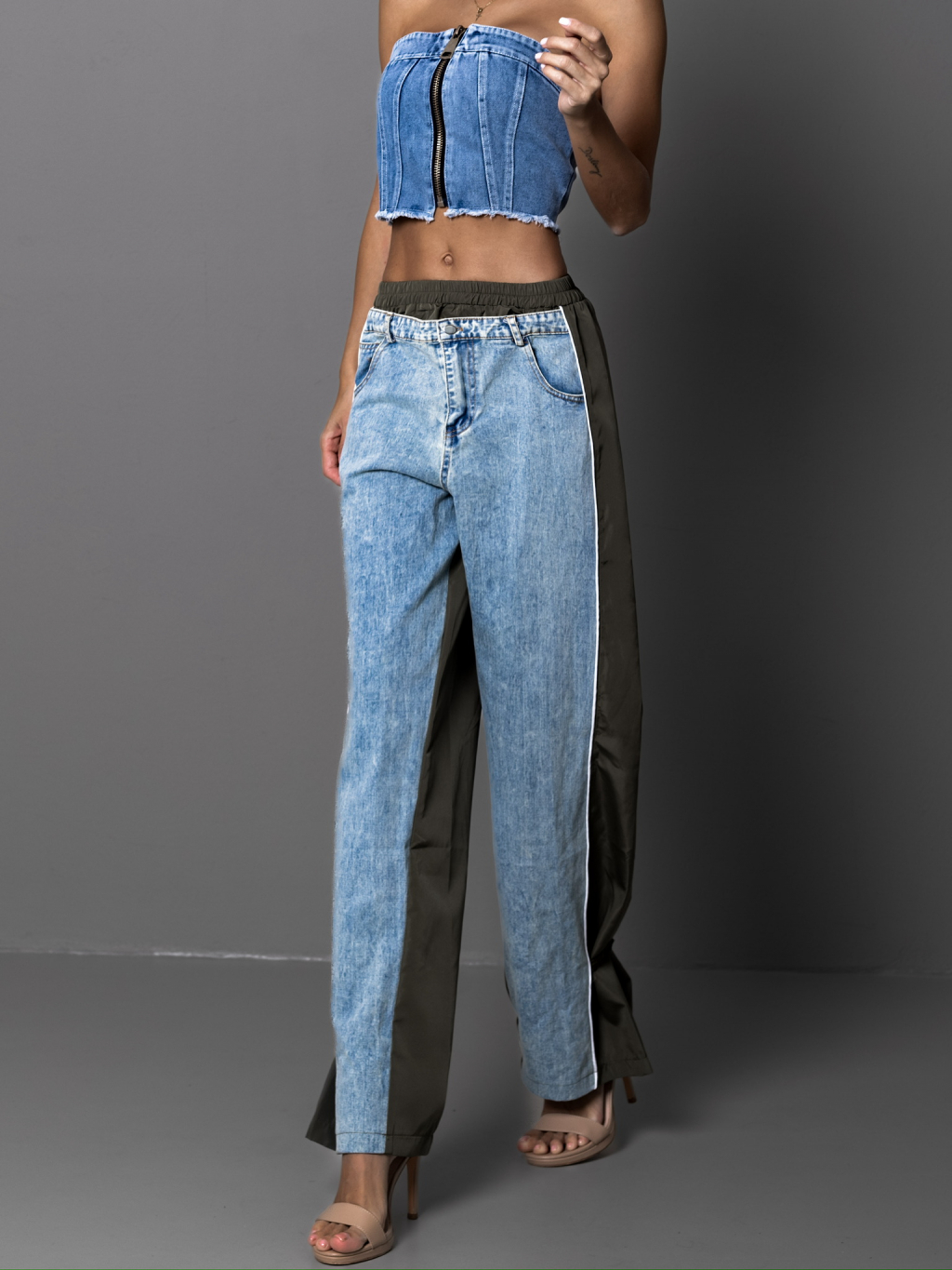 Kombinované džínsy APIS s rozšírenými nohavicami