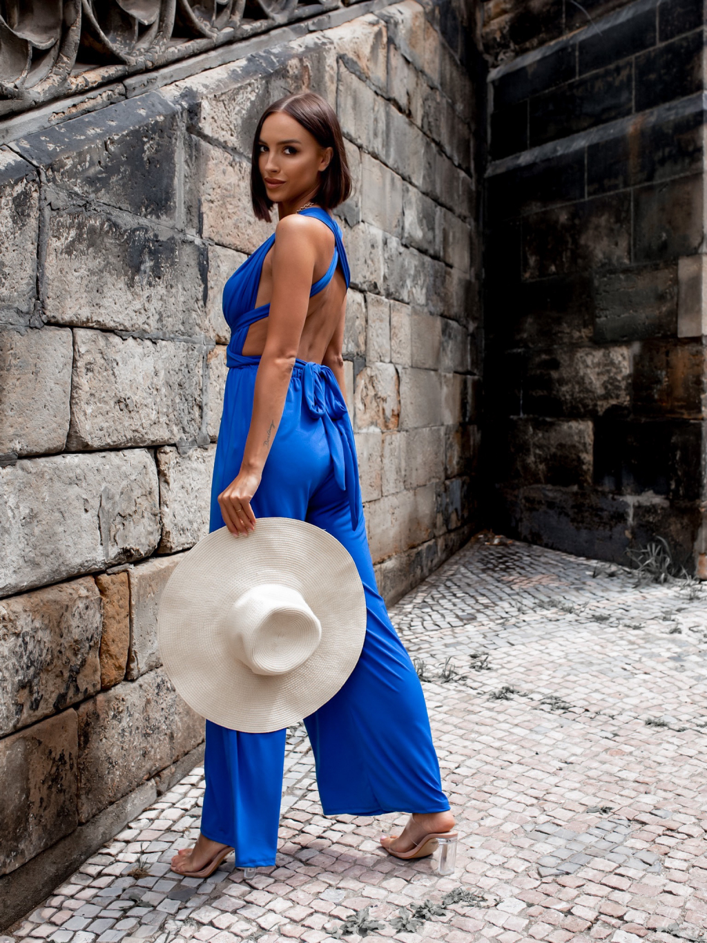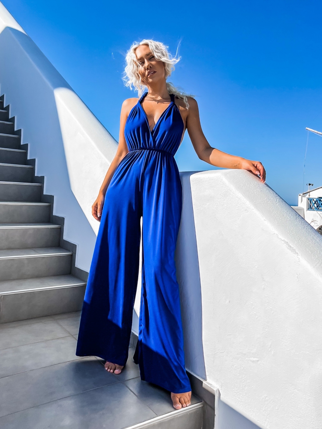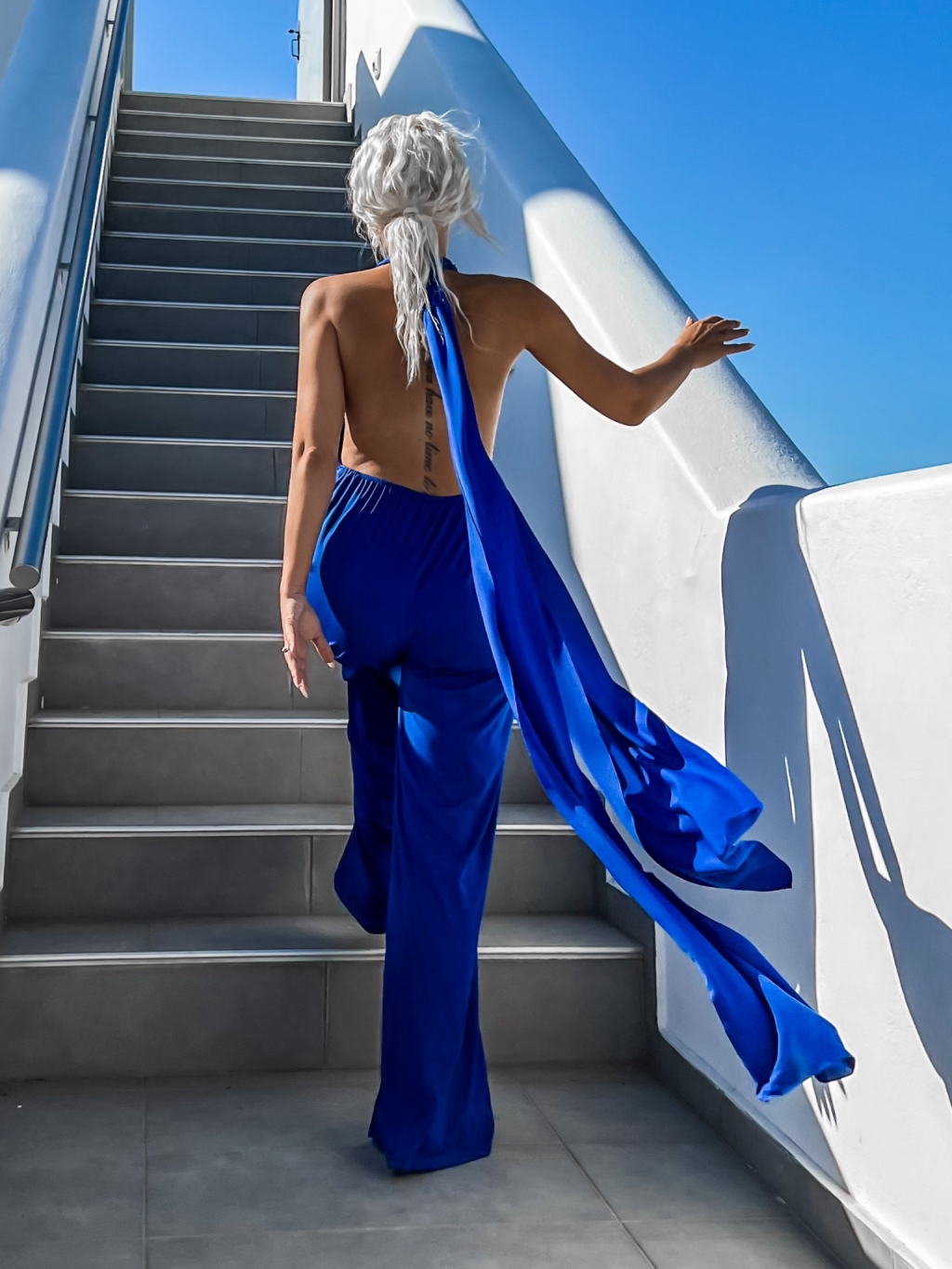 Kráľovsky modrý dlhý overal PERCY na zaväzovanie