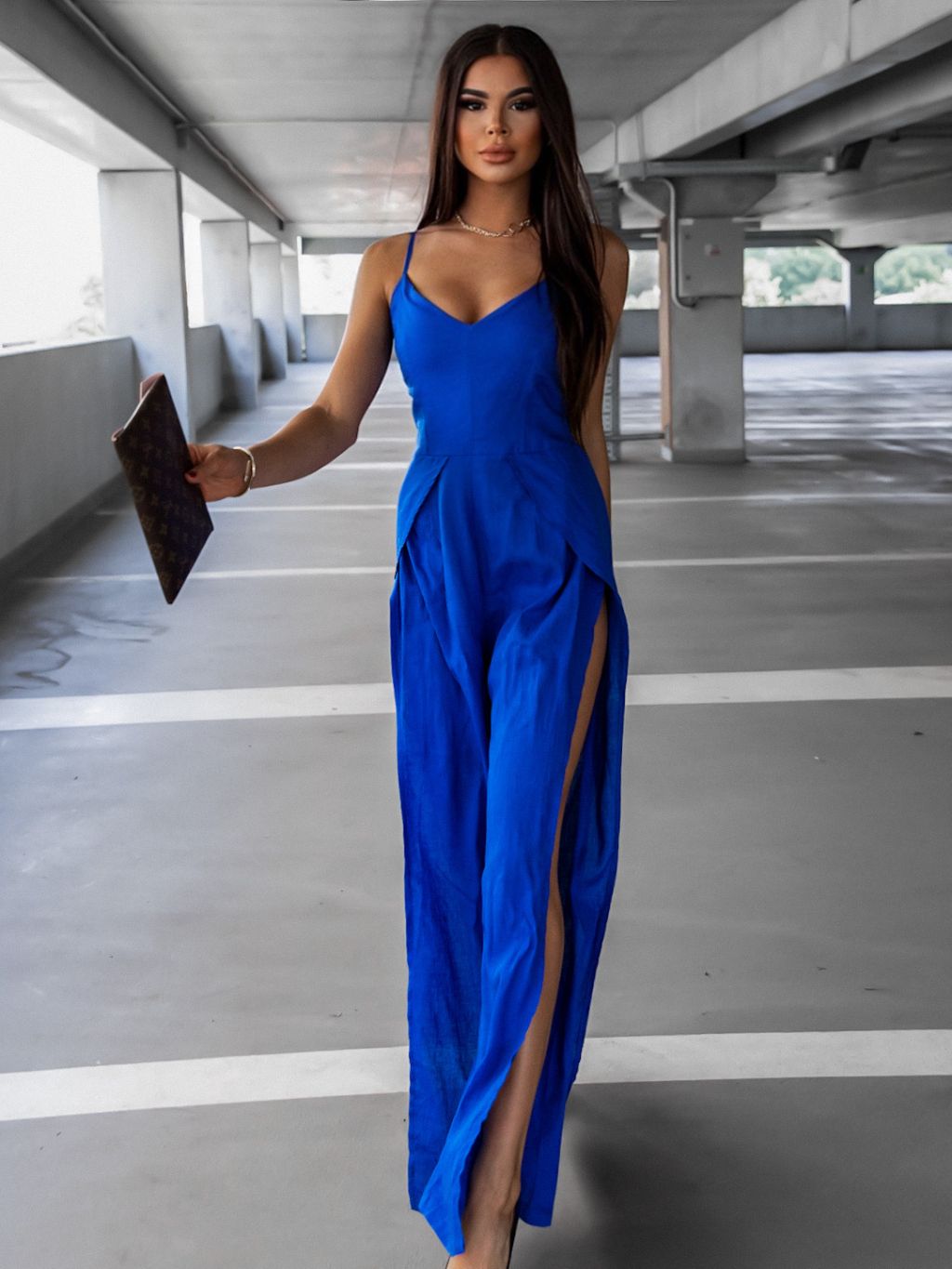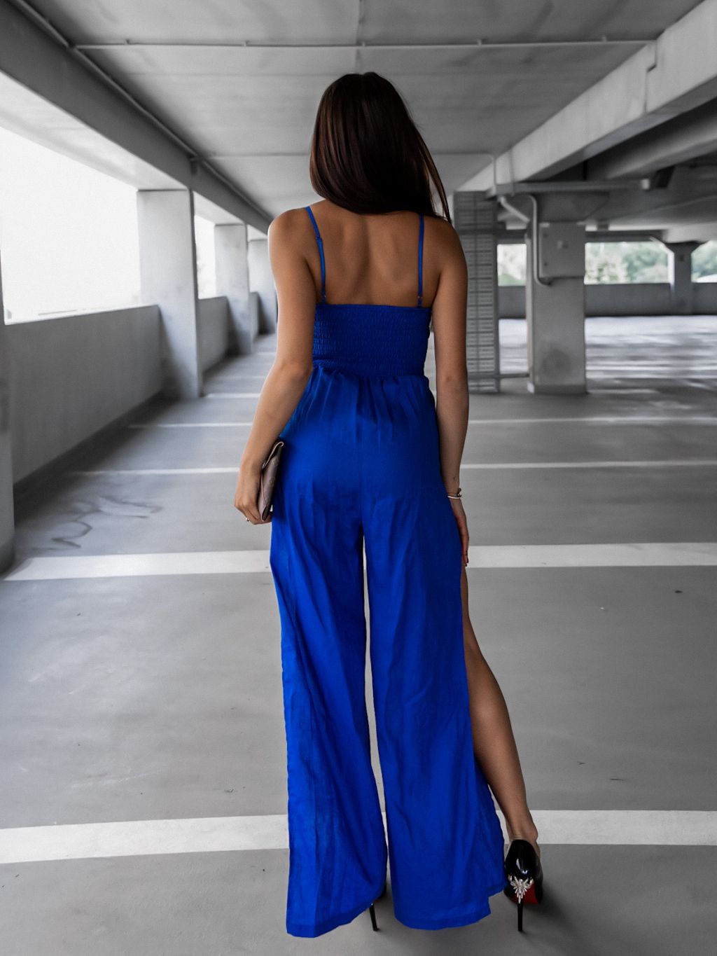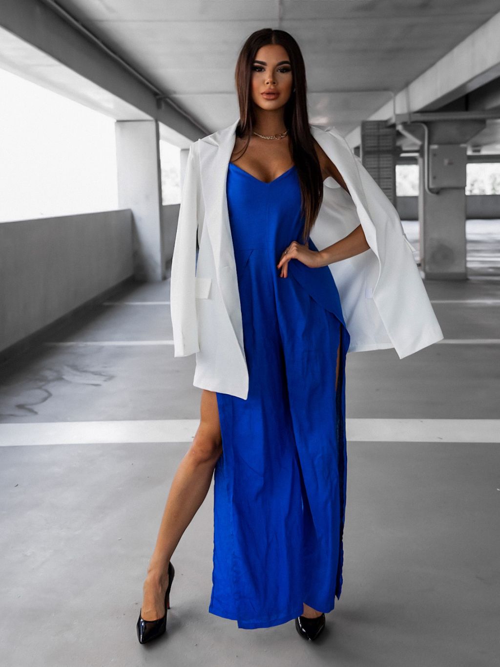 Kráľovsky modrý elegantný overal MAELIE s rázporkami