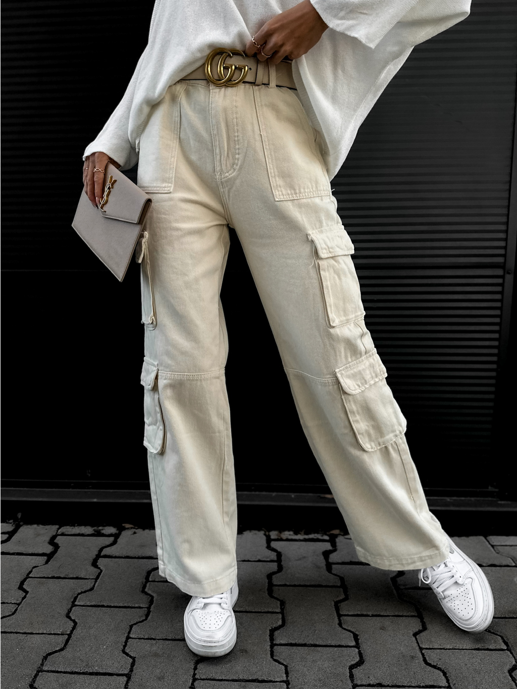 Krémové denim džínsy SKYNEL s vreckami