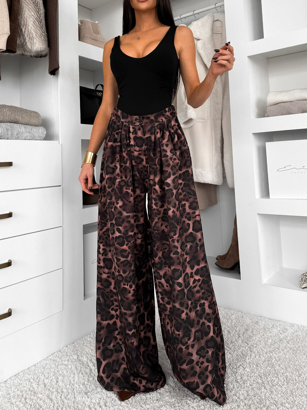 Leopardie široké wide leg leopardie nohavice EMARIE