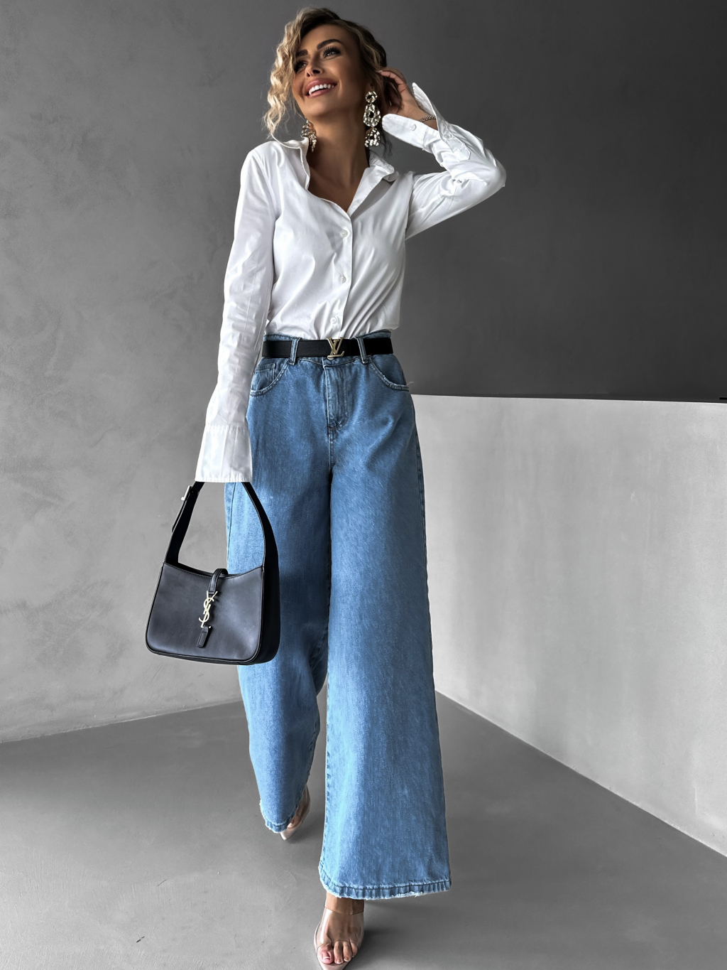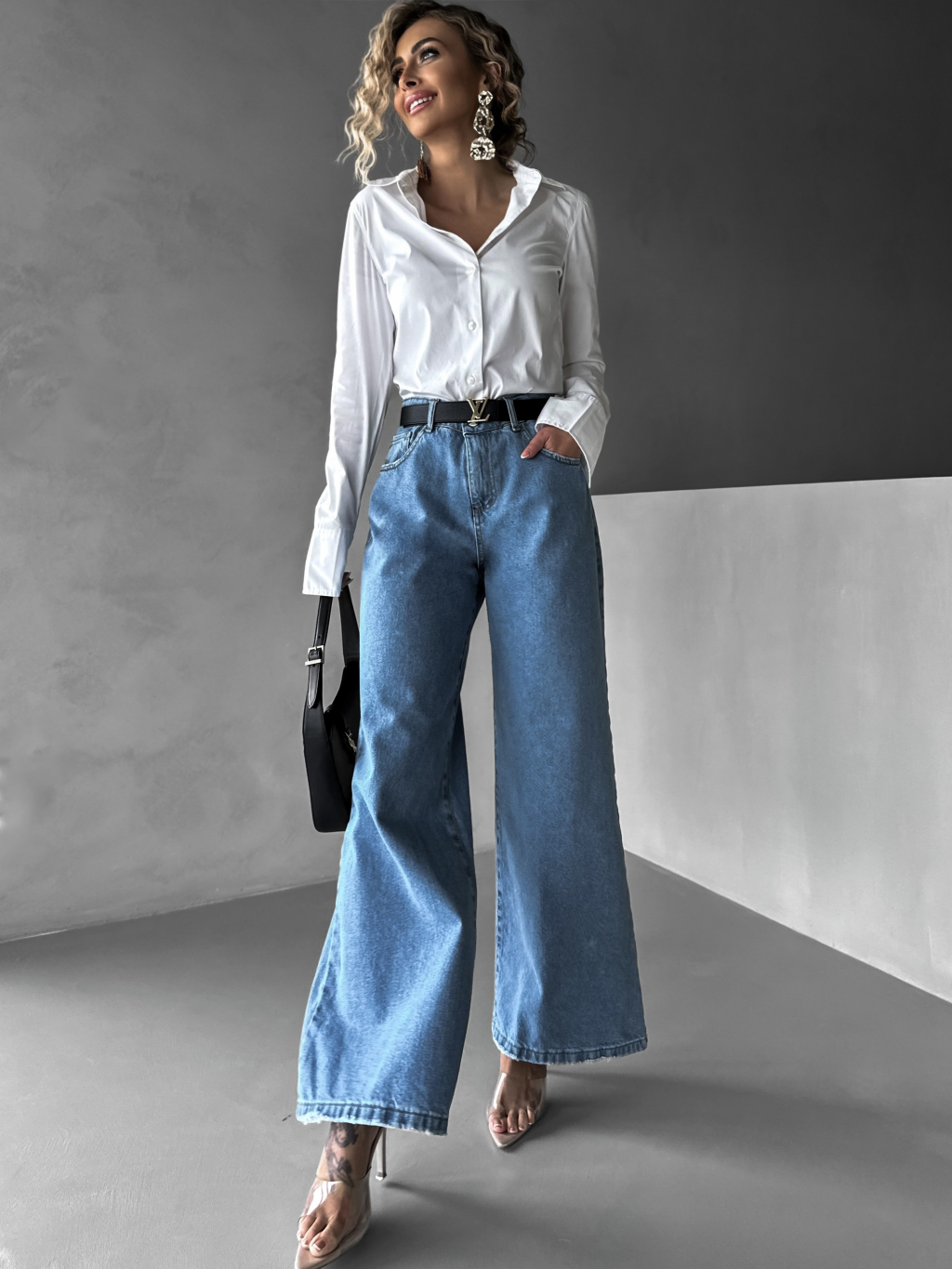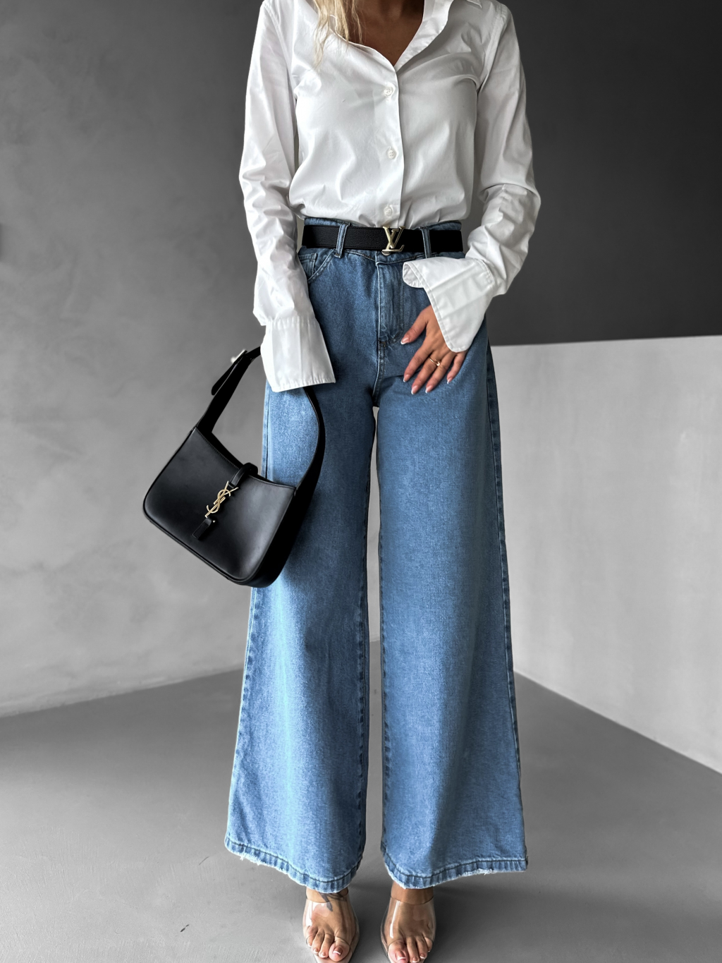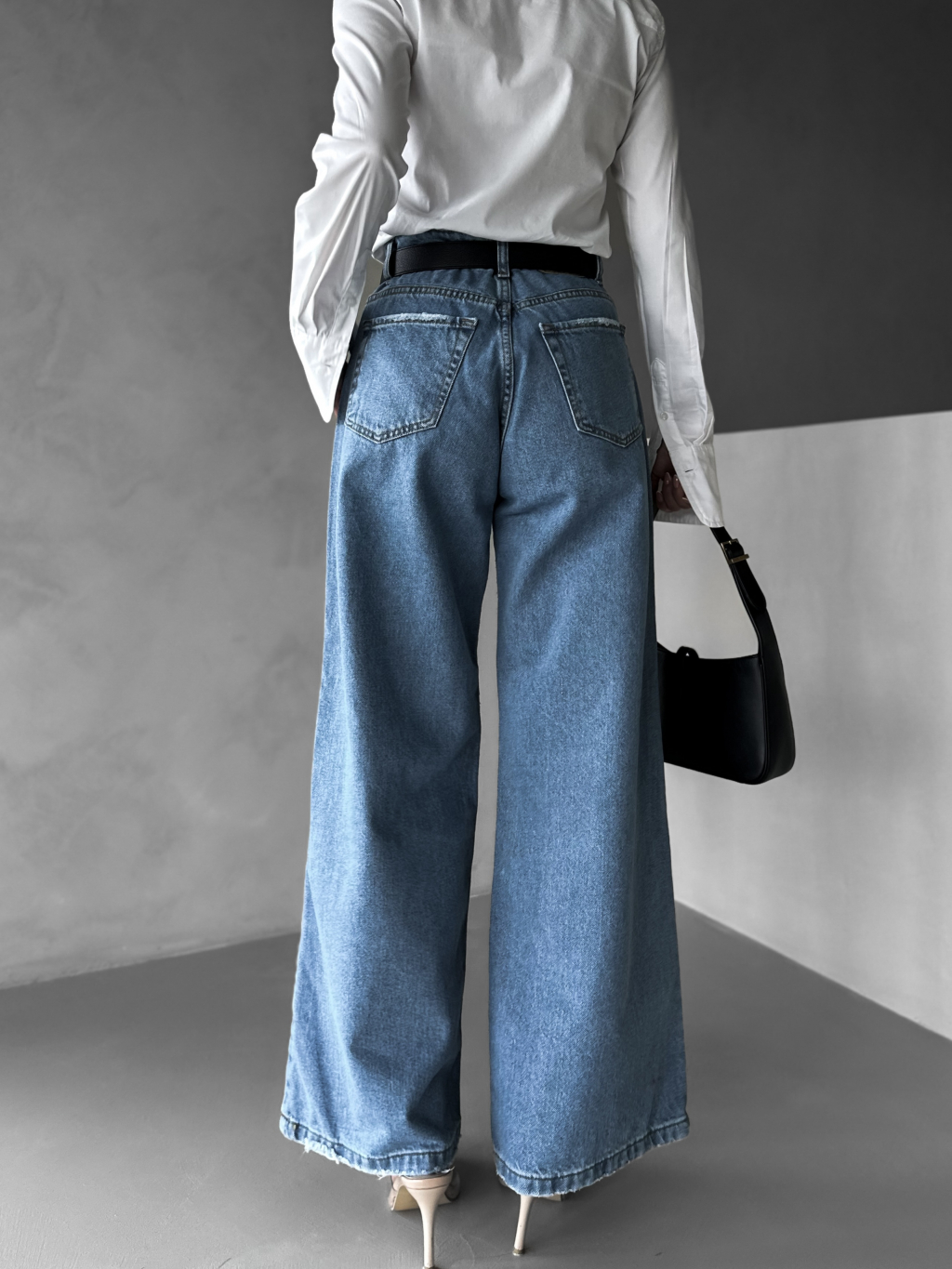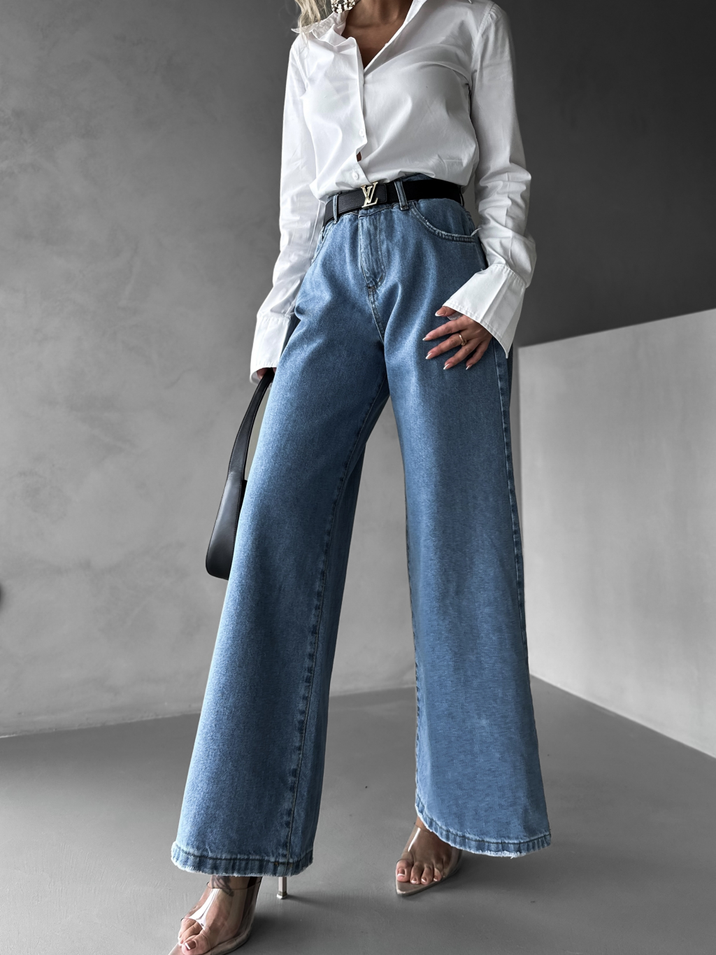 Modré basic široké wide leg džínsy KENAN