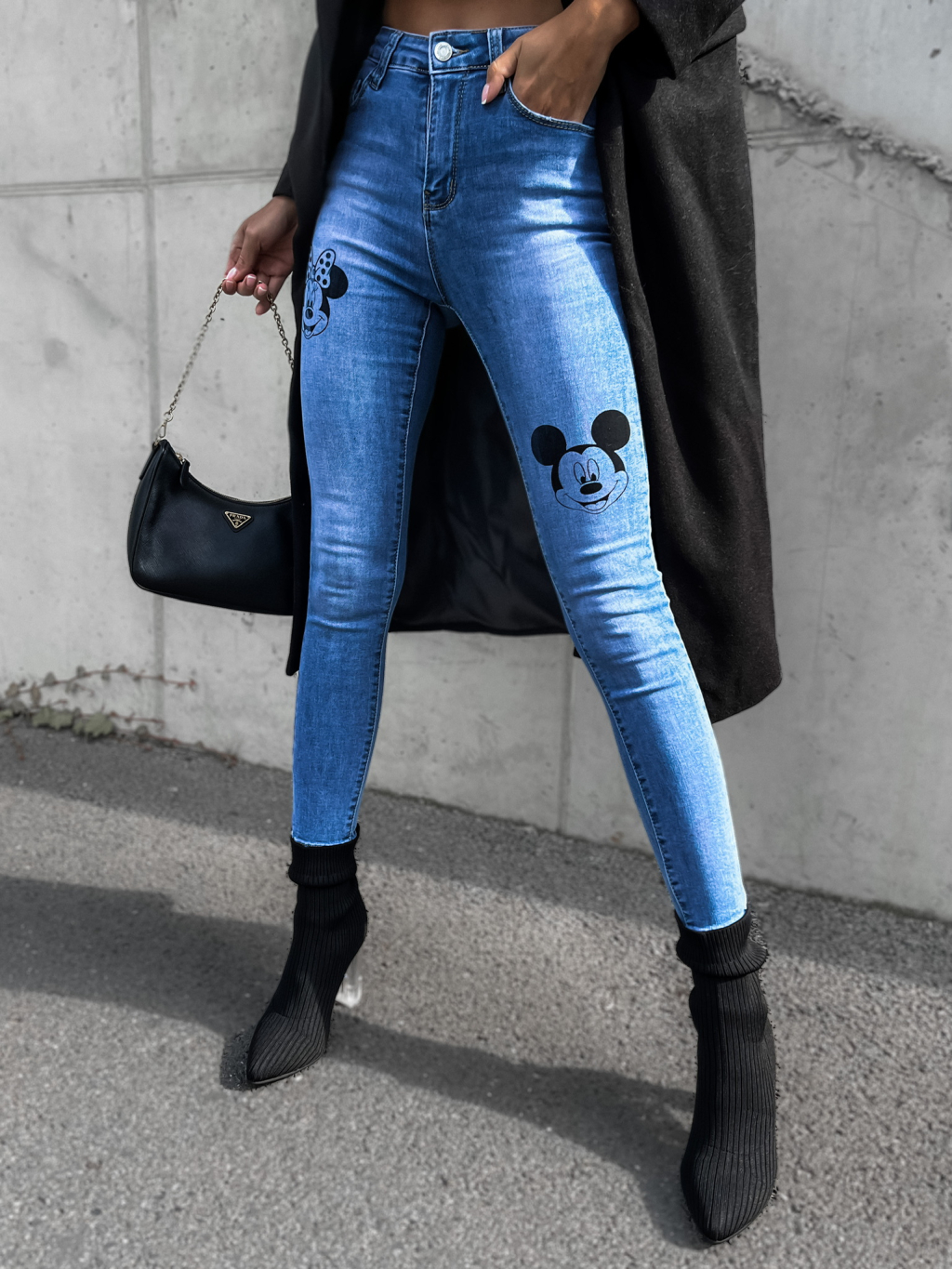 Modré denim džínsy MARIGY s potlačou