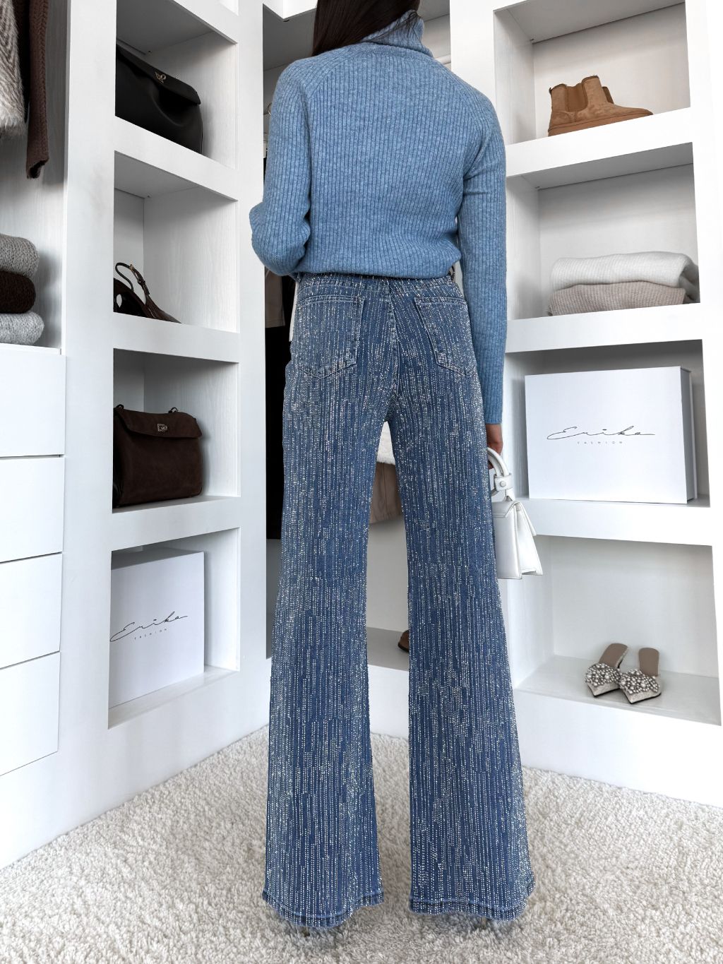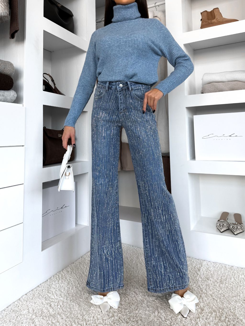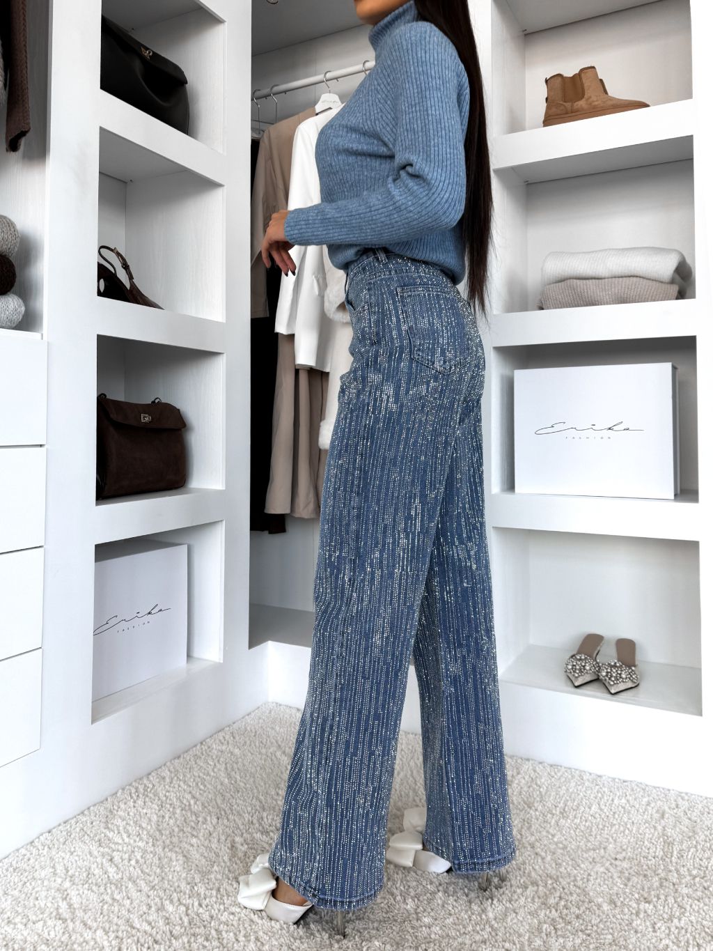 Modré trblietavé široké wide leg džínsy RYNOY