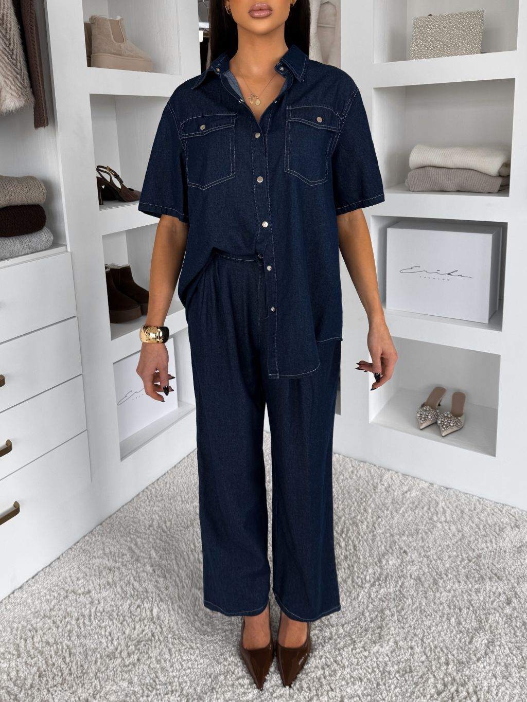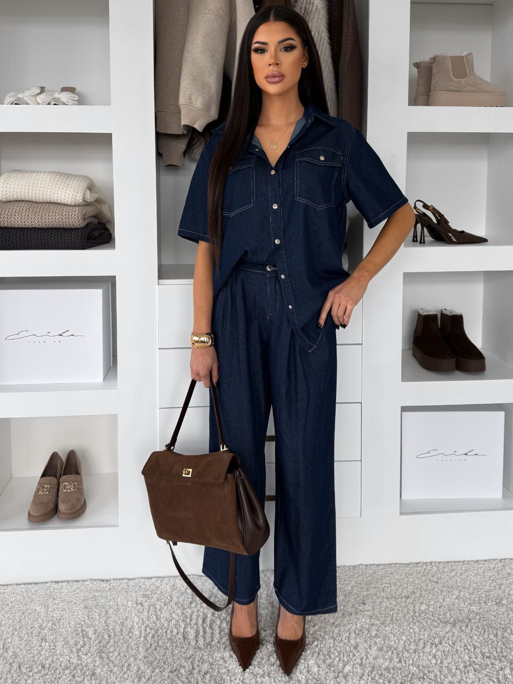 Modrý nohavicový džínsový komplet AMBRON s košeľou