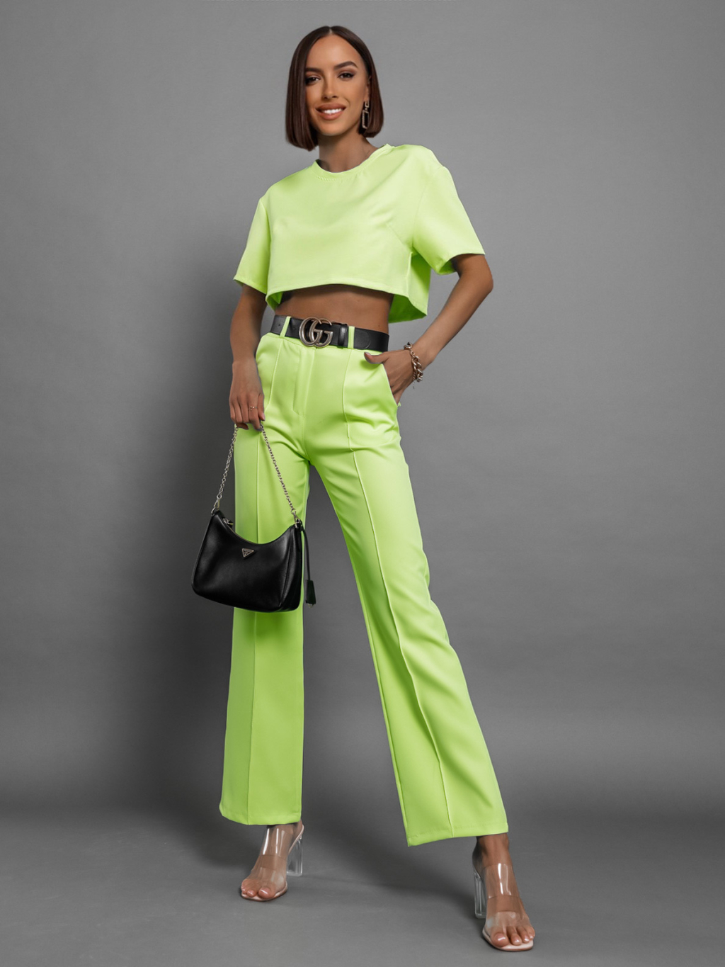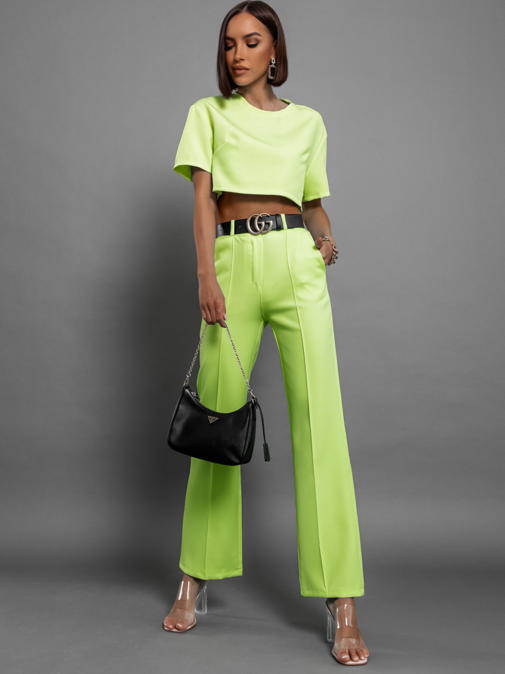 Neónovo zelený elegantný dvojdielny komplet CRYLLA