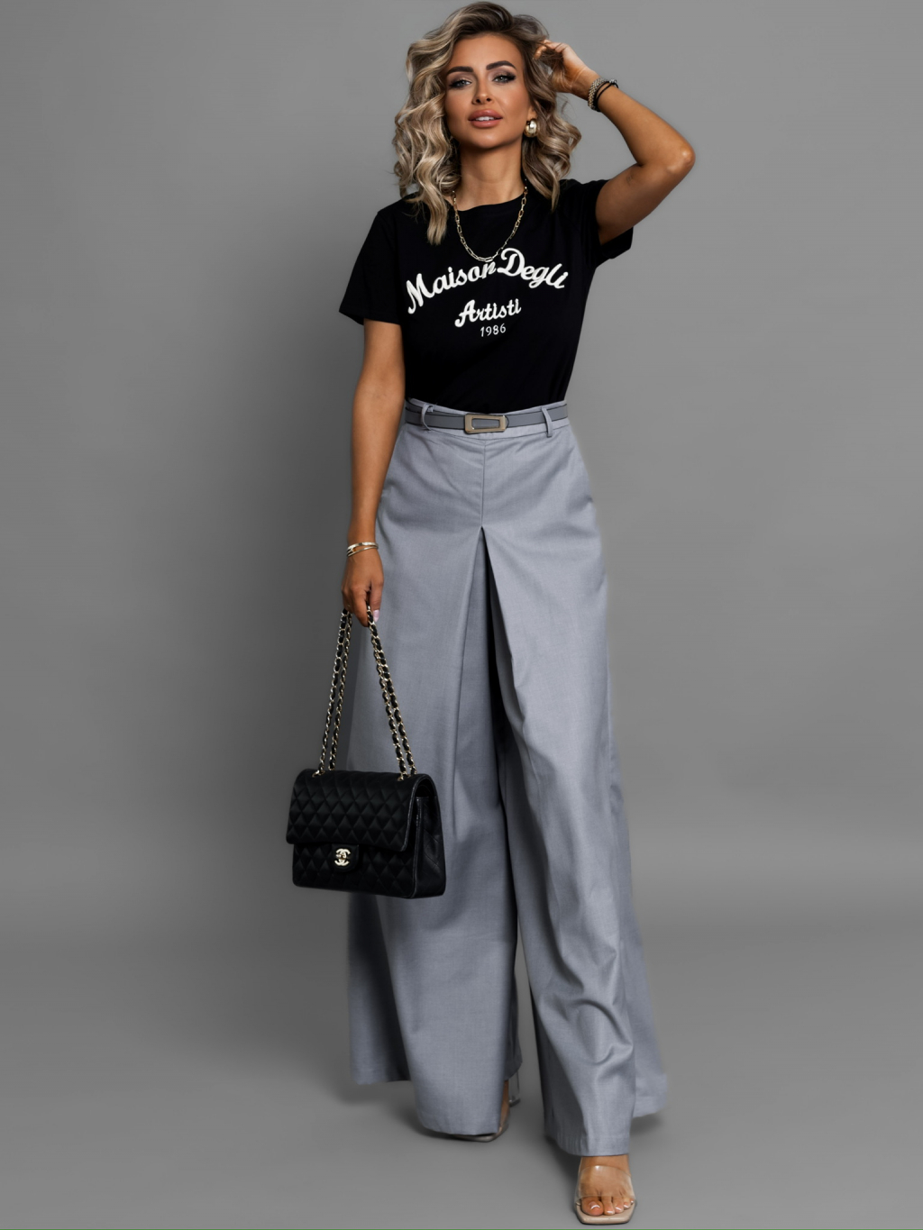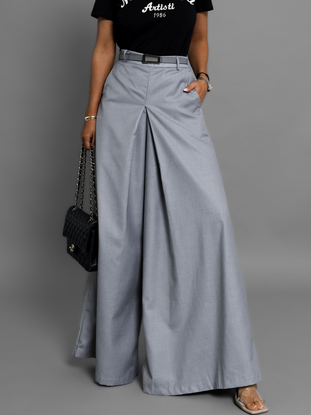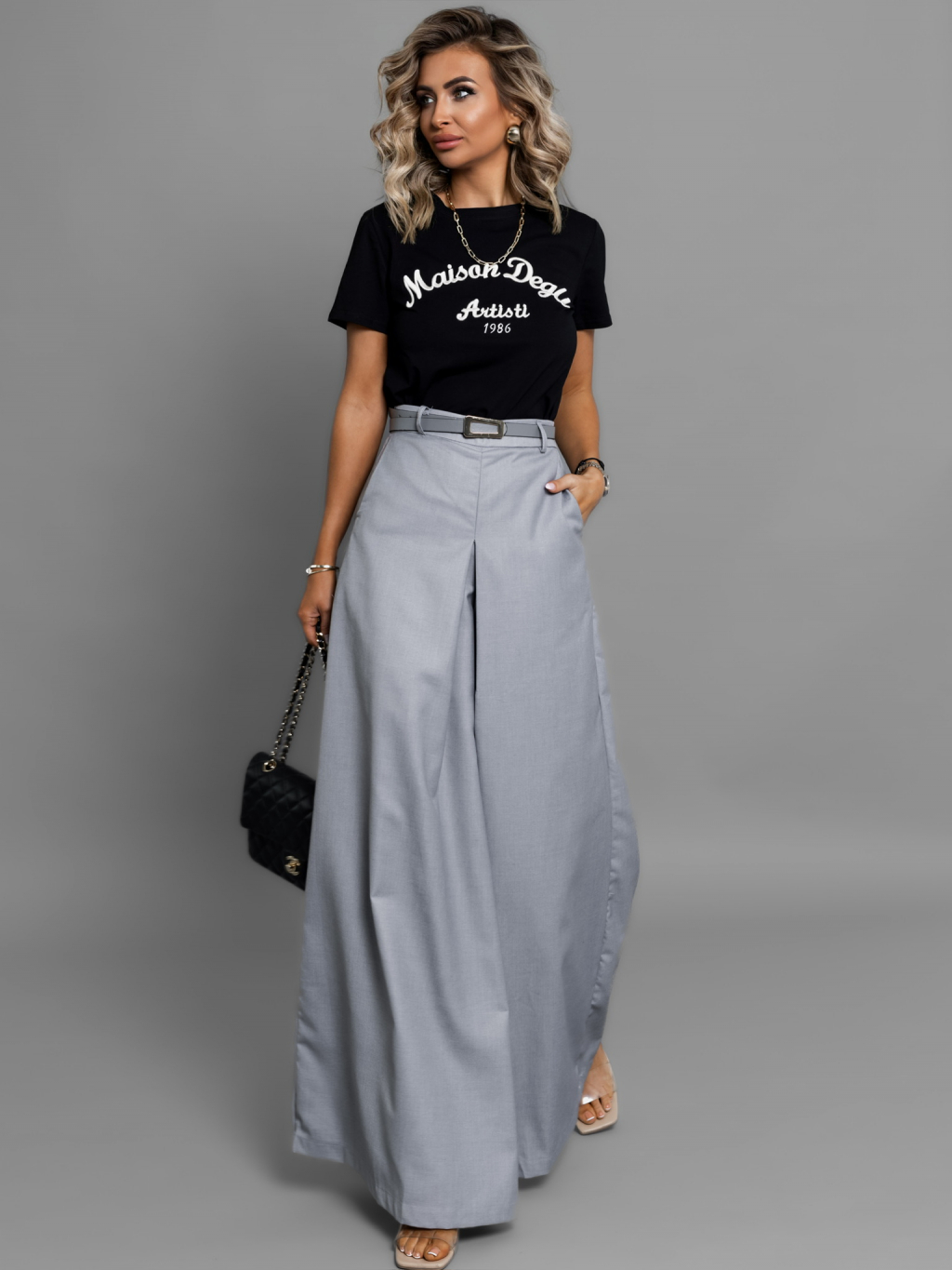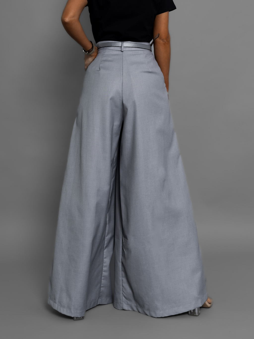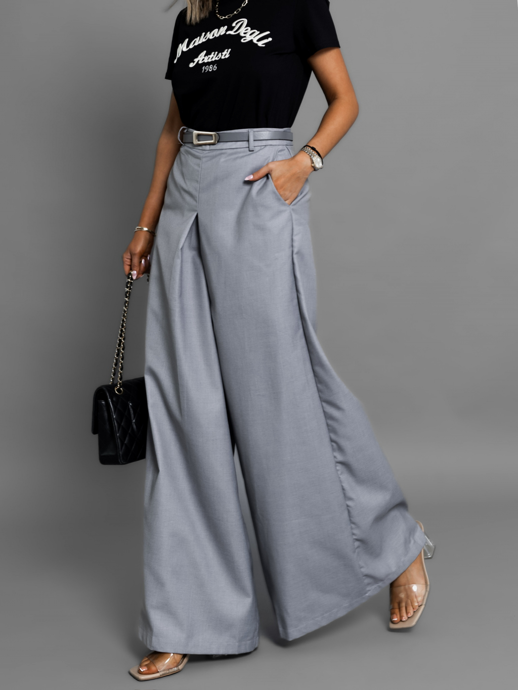 Šedé elegantné široké nohavice CATERINA s opaskom