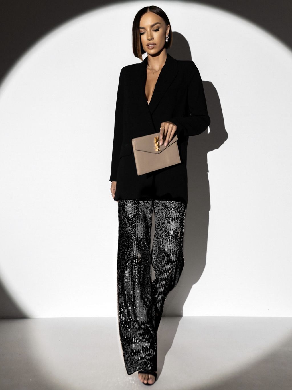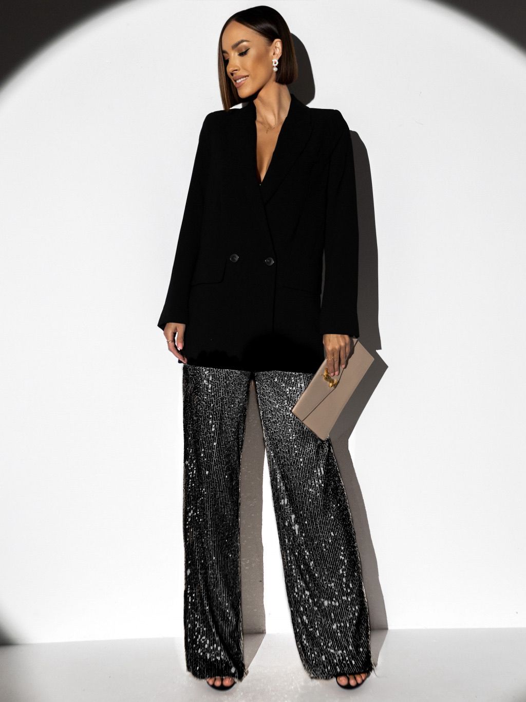 Šedé trblietavé široké nohavice HEKATE s flitrami