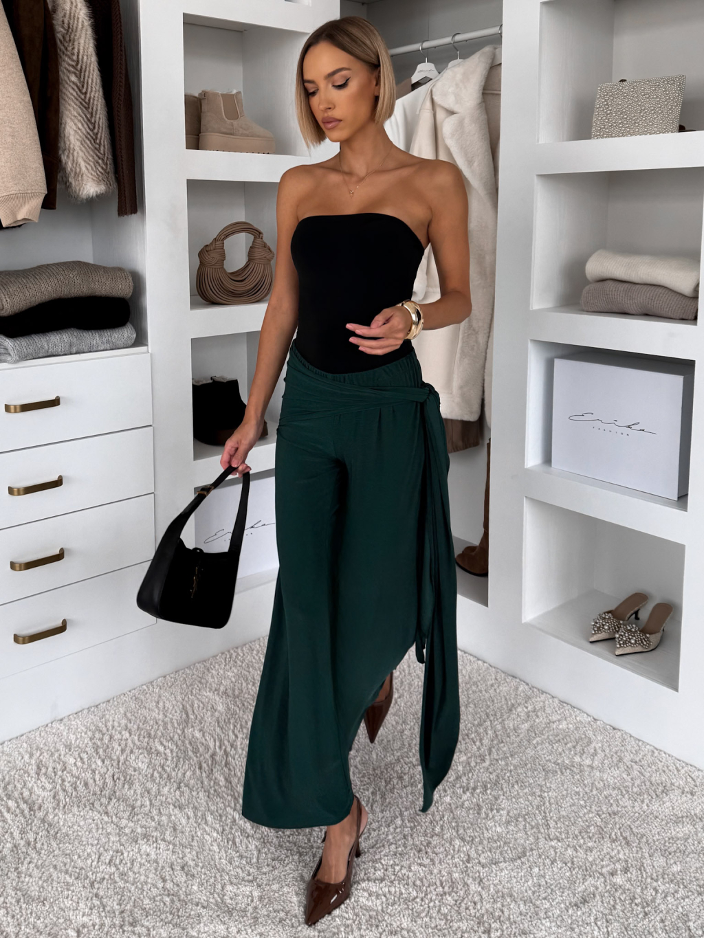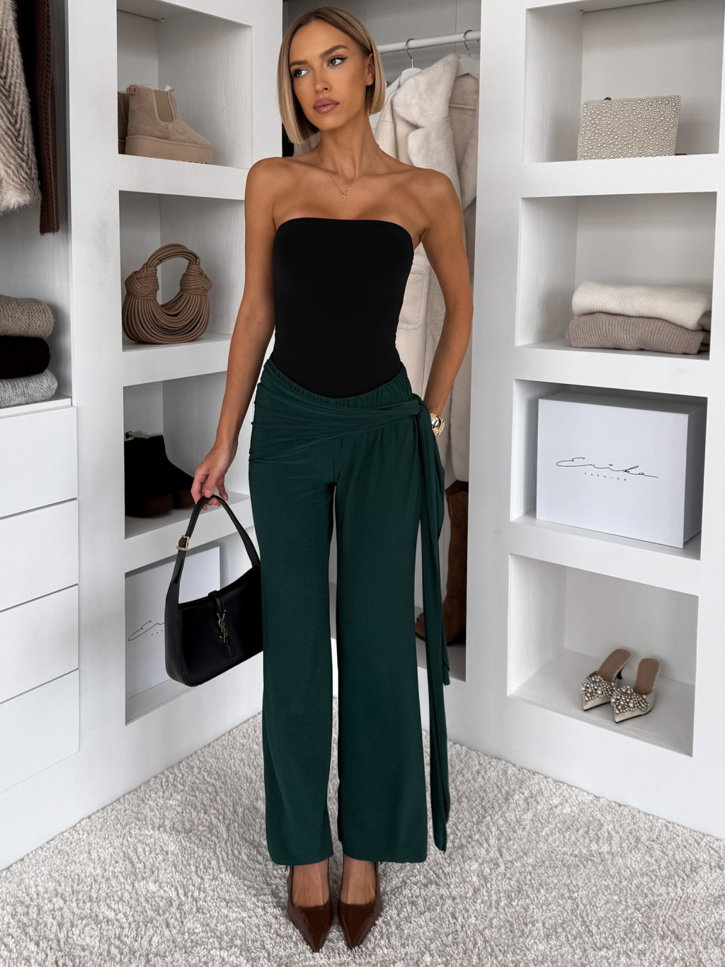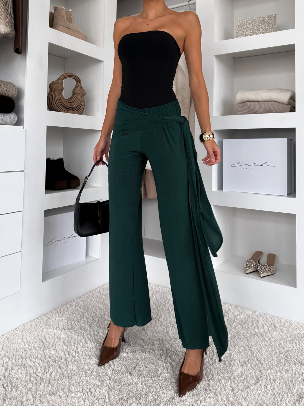 Smaragdové elegantné nohavice IRAVELL s vlečkou