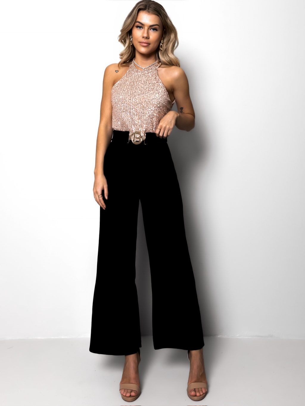 Spoločenský overal LOKASTE s opaskom a flitrami