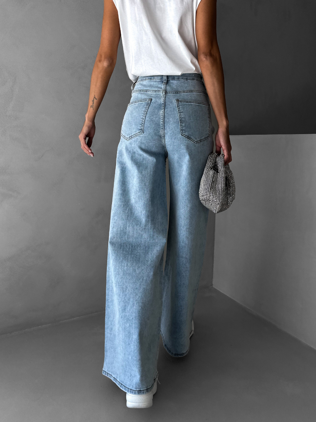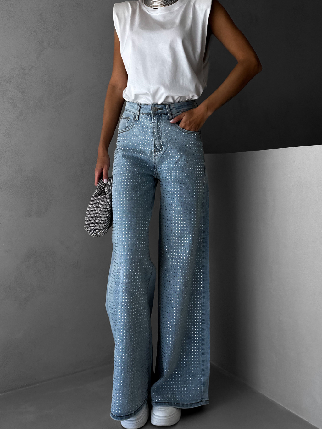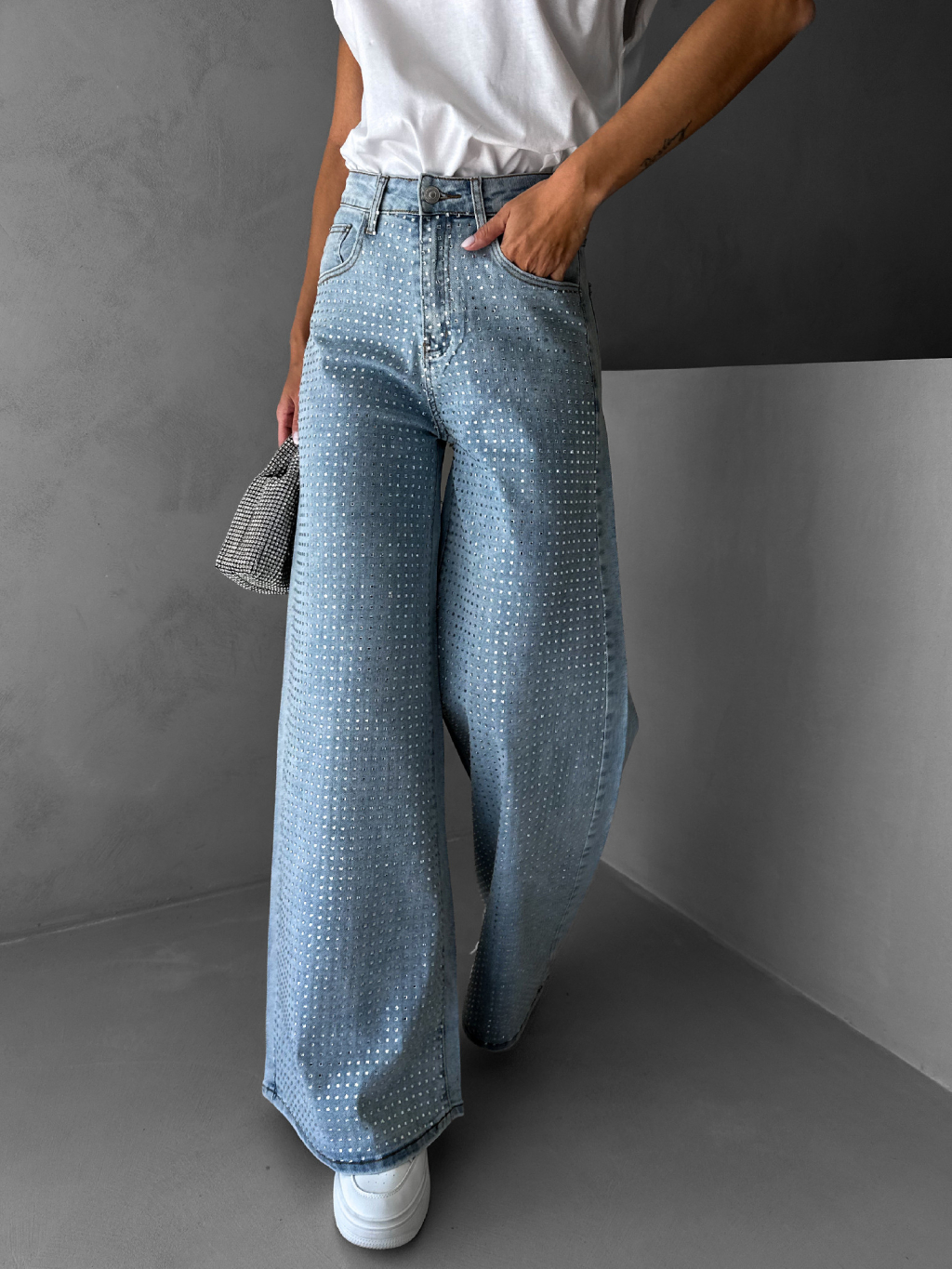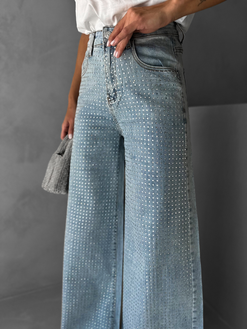 Svetlé trblietavé wide leg široké džínsy EGEMEN s kamienkami