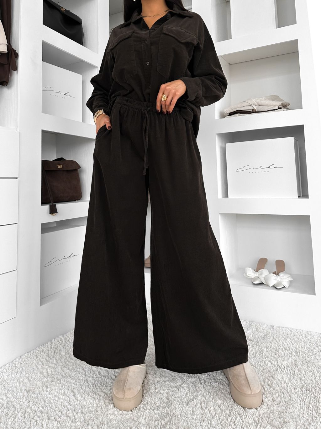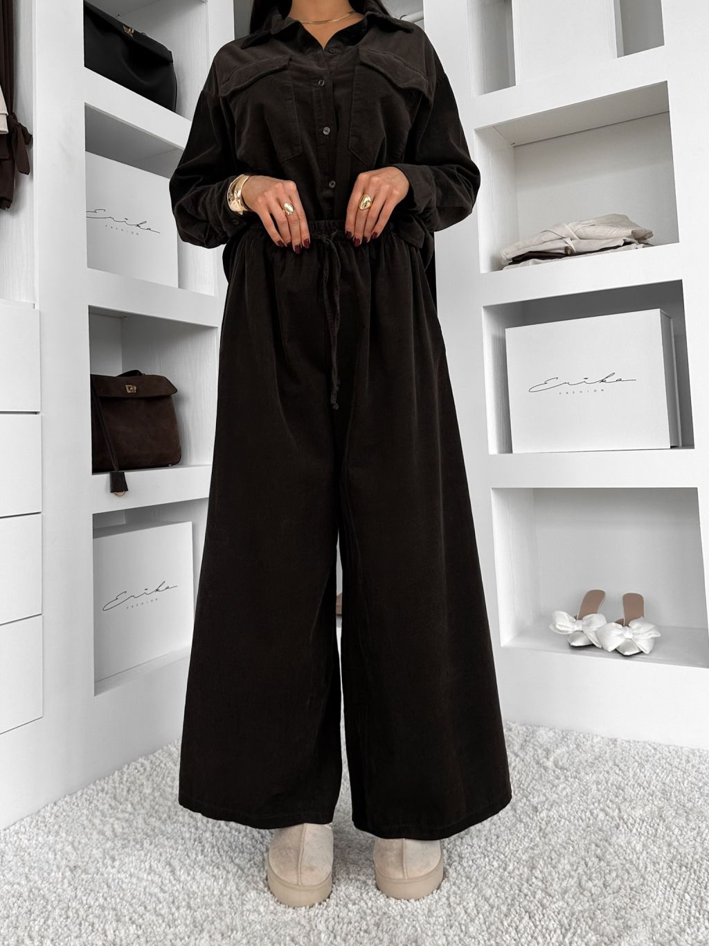 Tmavo hnedé manžestrové široké nohavice VORELLE