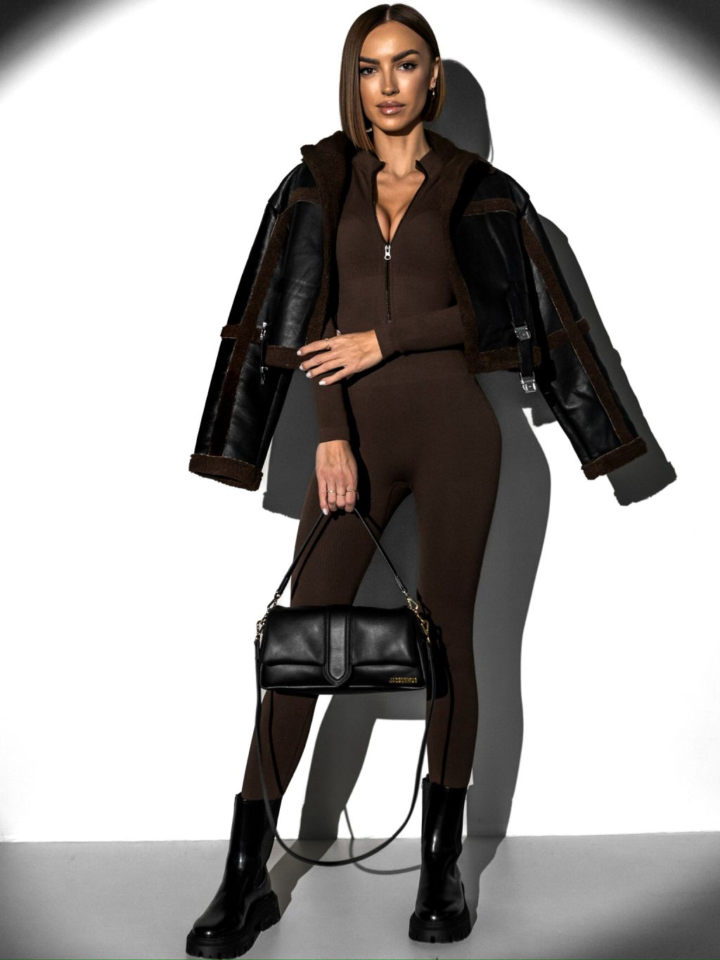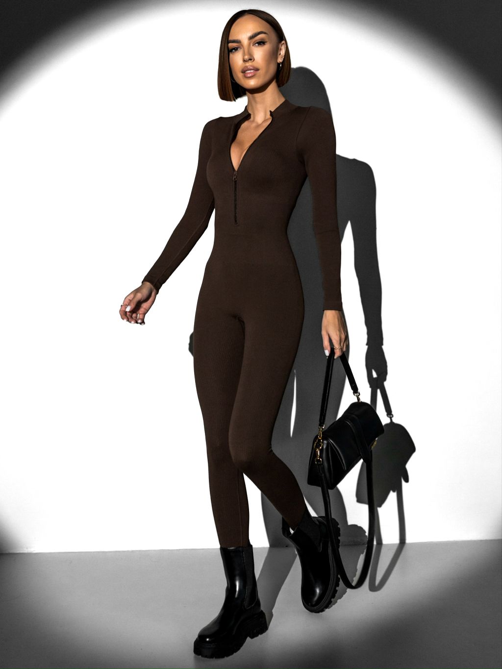 Tmavo hnedý sťahujúci a zoštíhľujúci overal PARKY