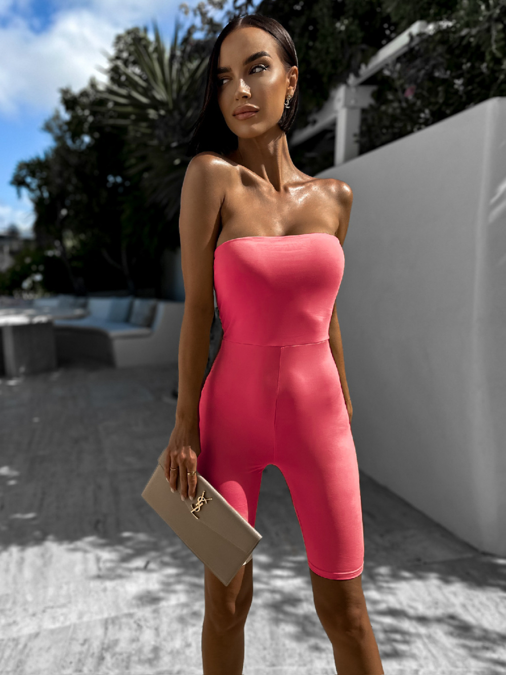 Tmavo ružový elegantný overal METASTE