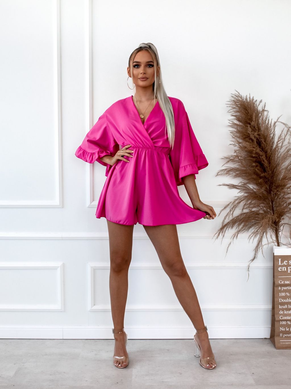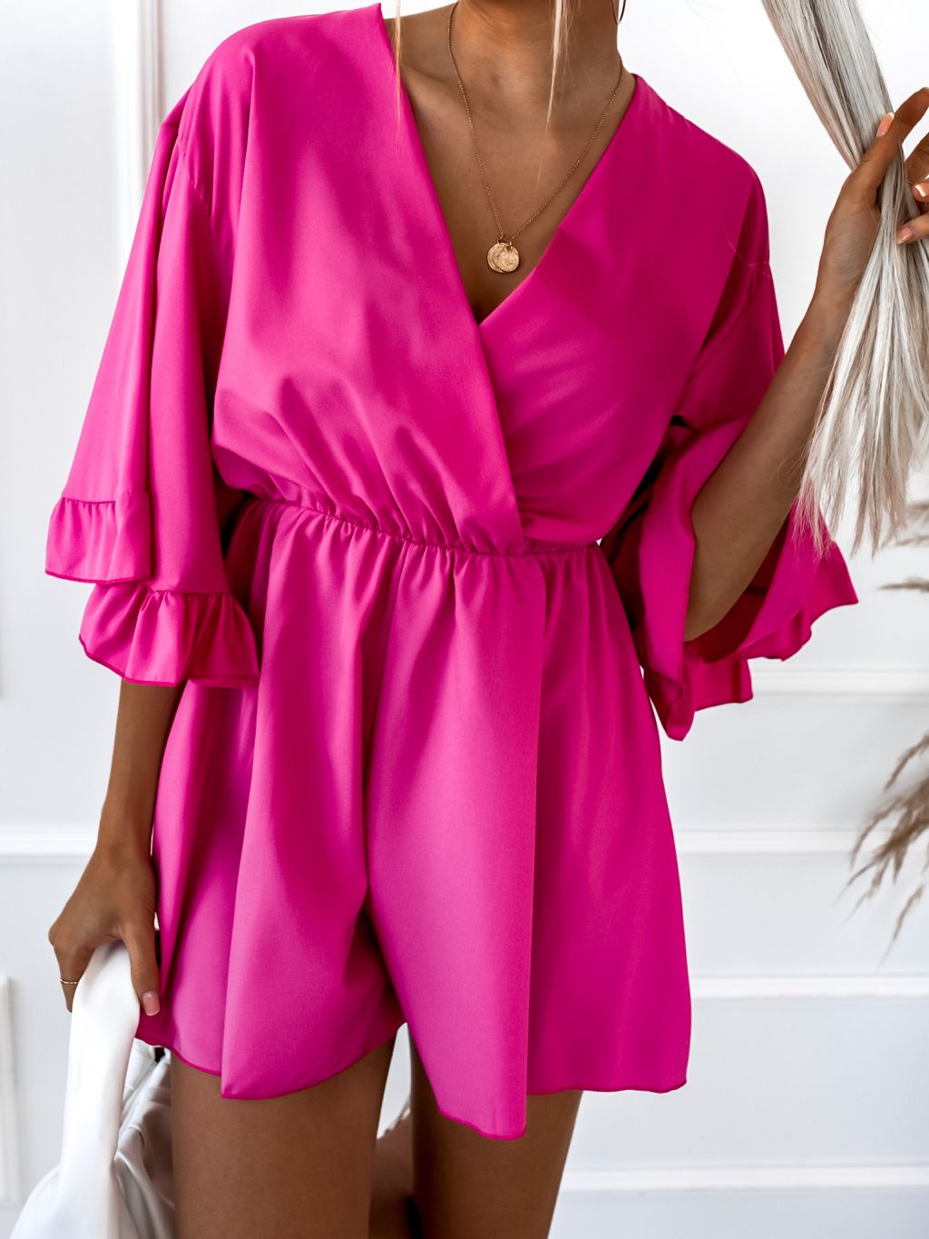 Tmavoružový krátky overal ALISE s voľnými rukávmi