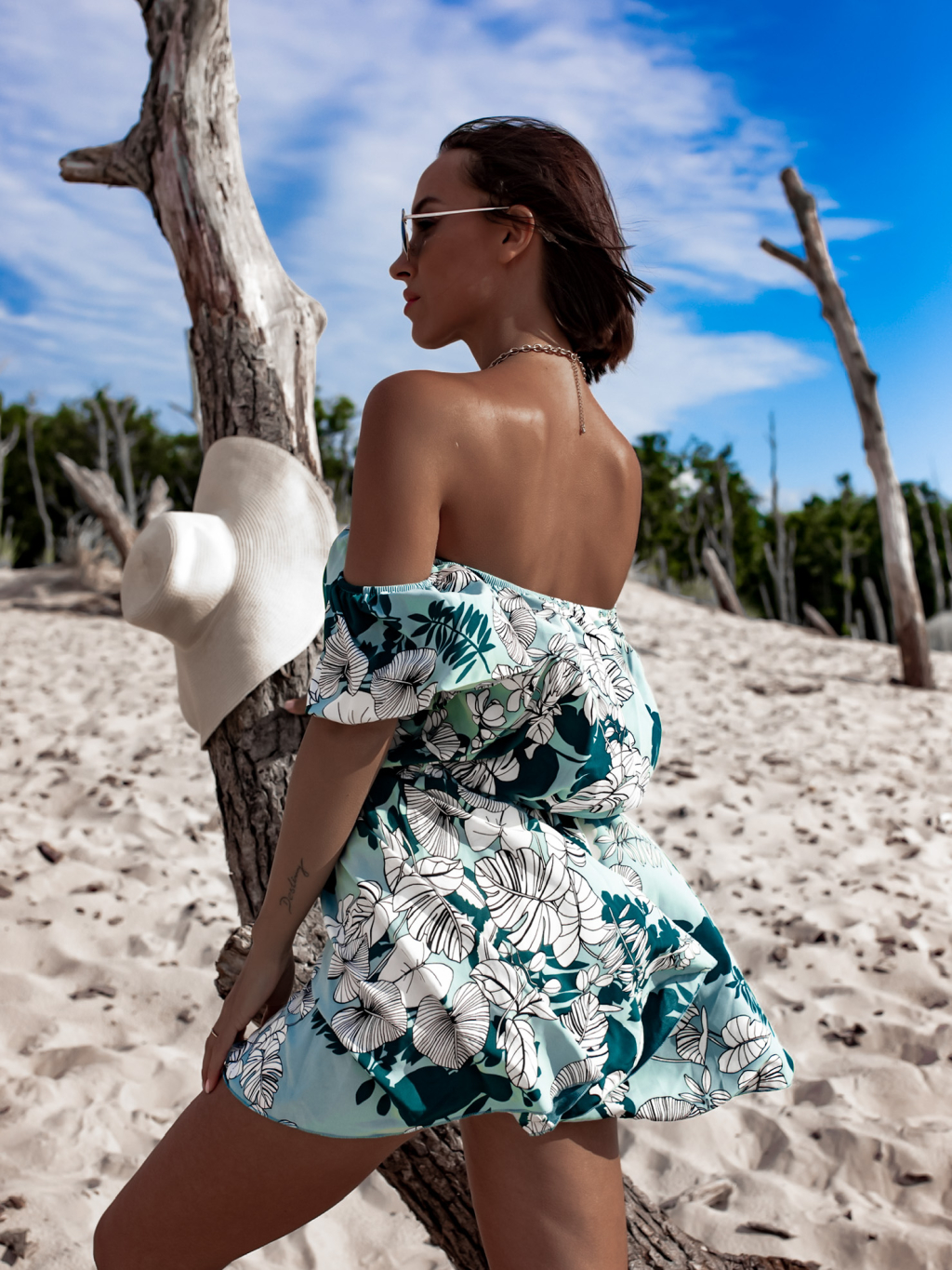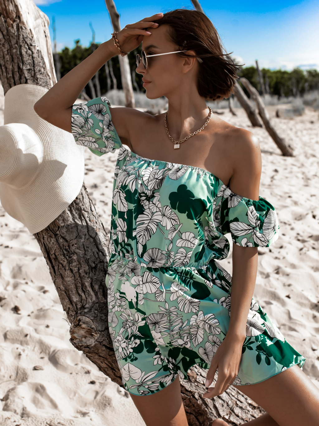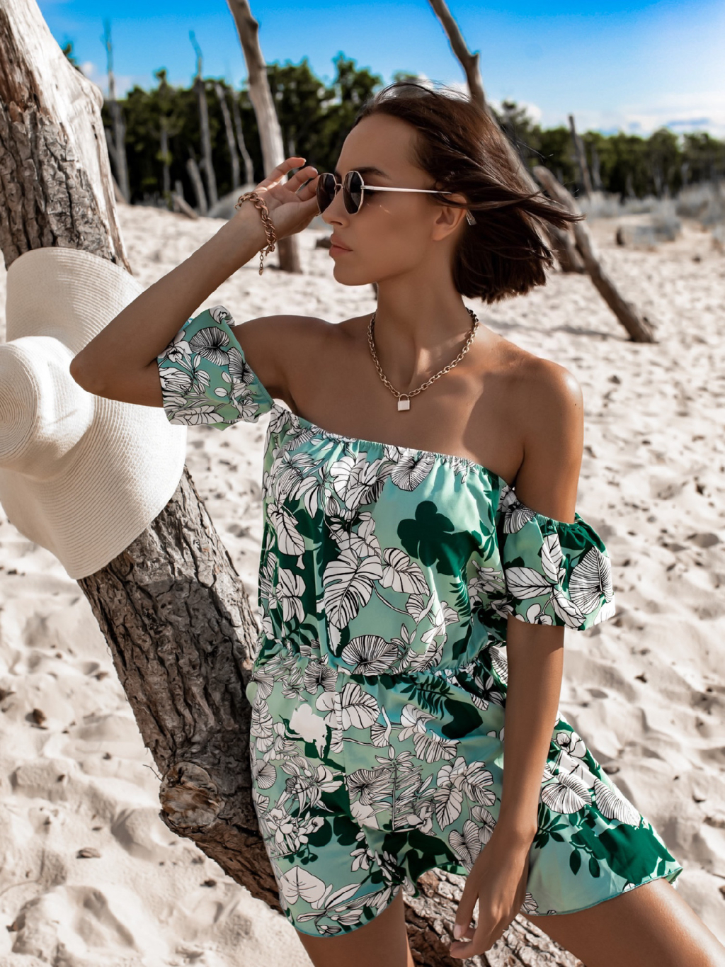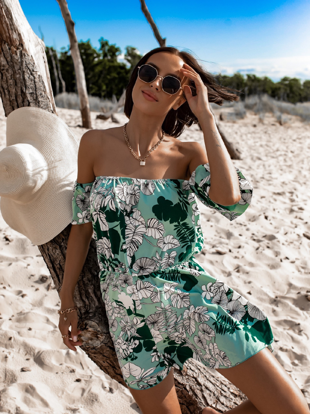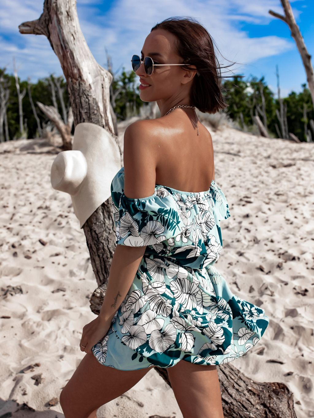 Tyrkysový krátky overal IMAGE s kvetinovou potlačou