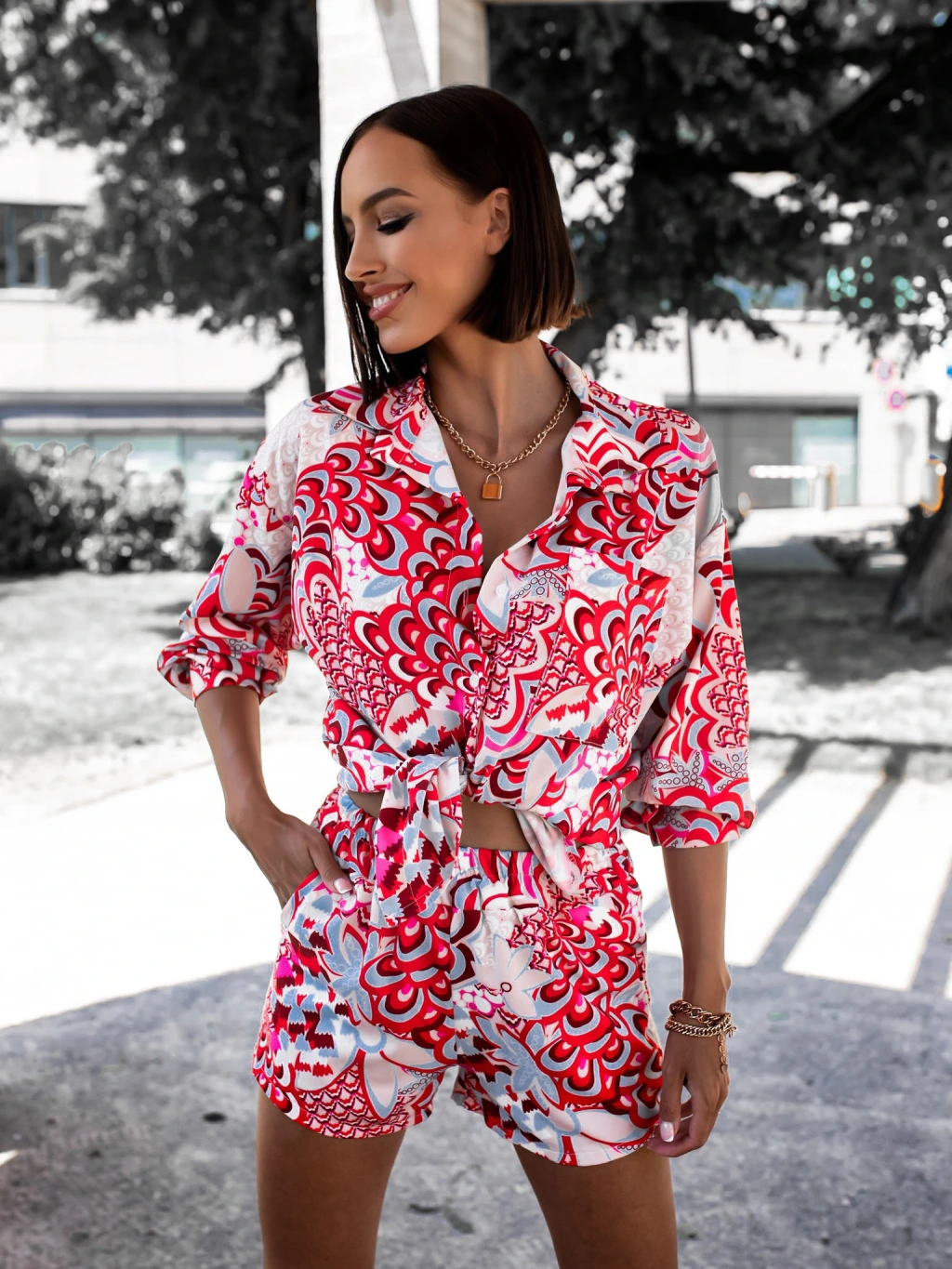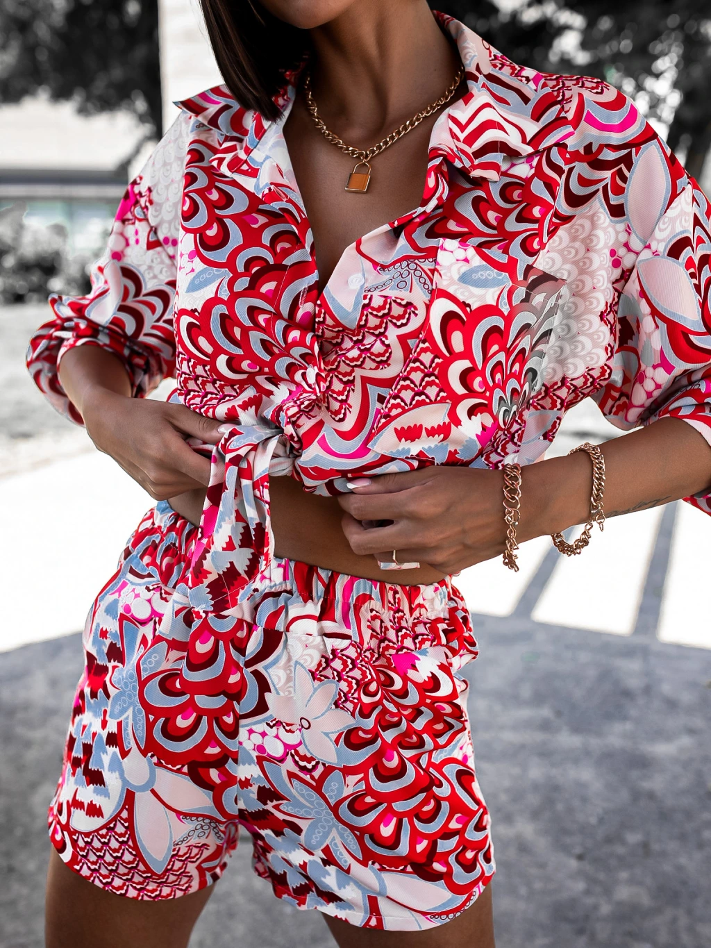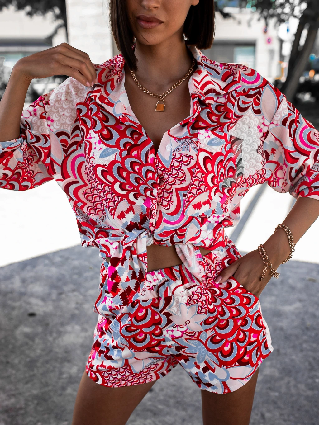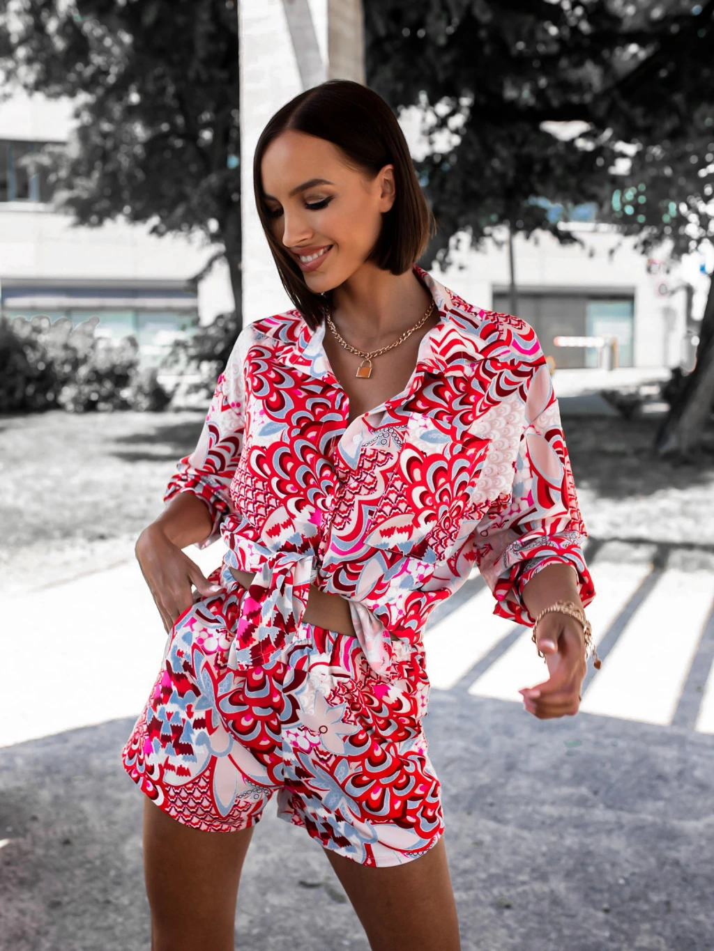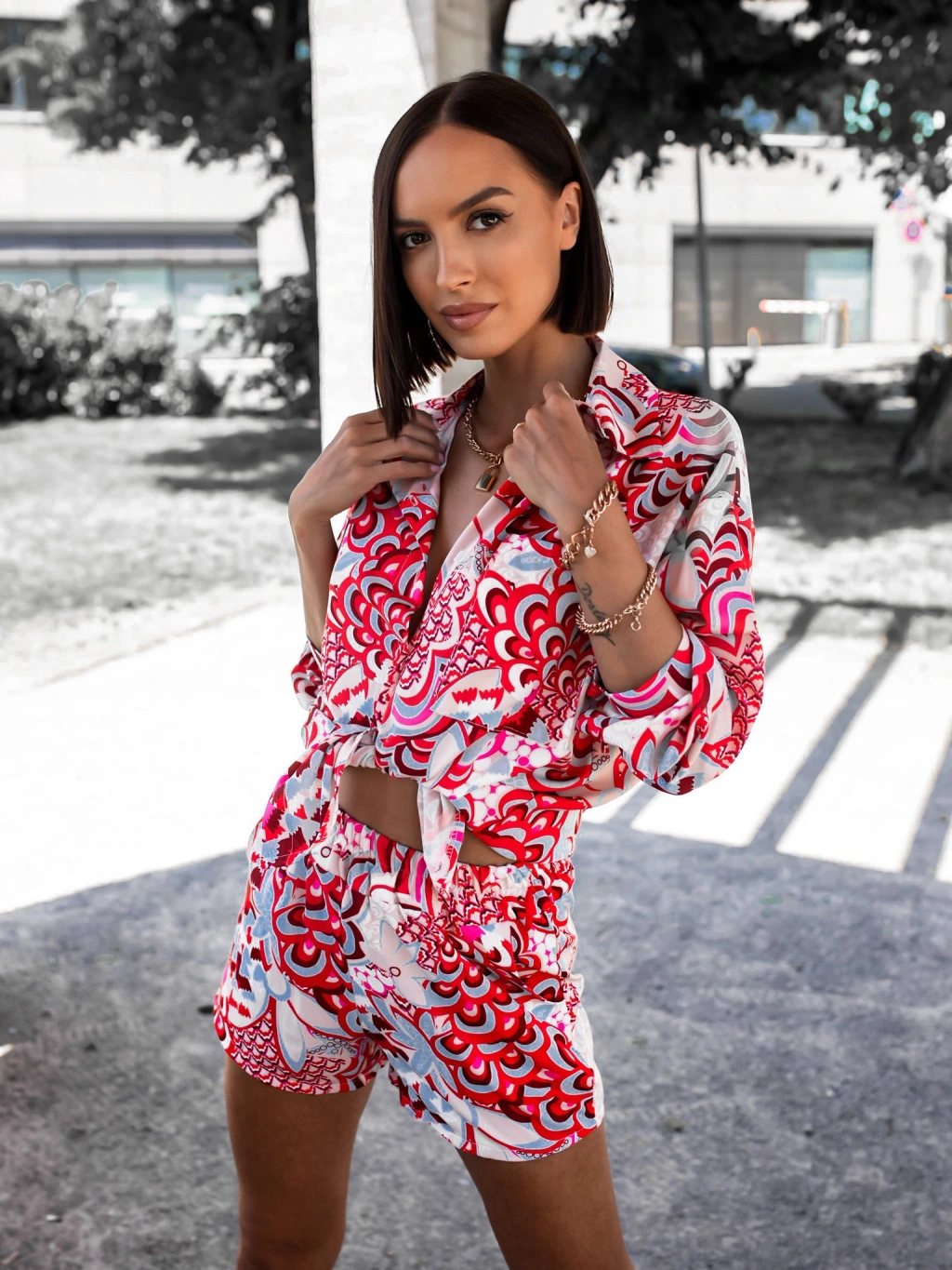 Viacfarebný dvojdielny komplet DRAW so vzorom