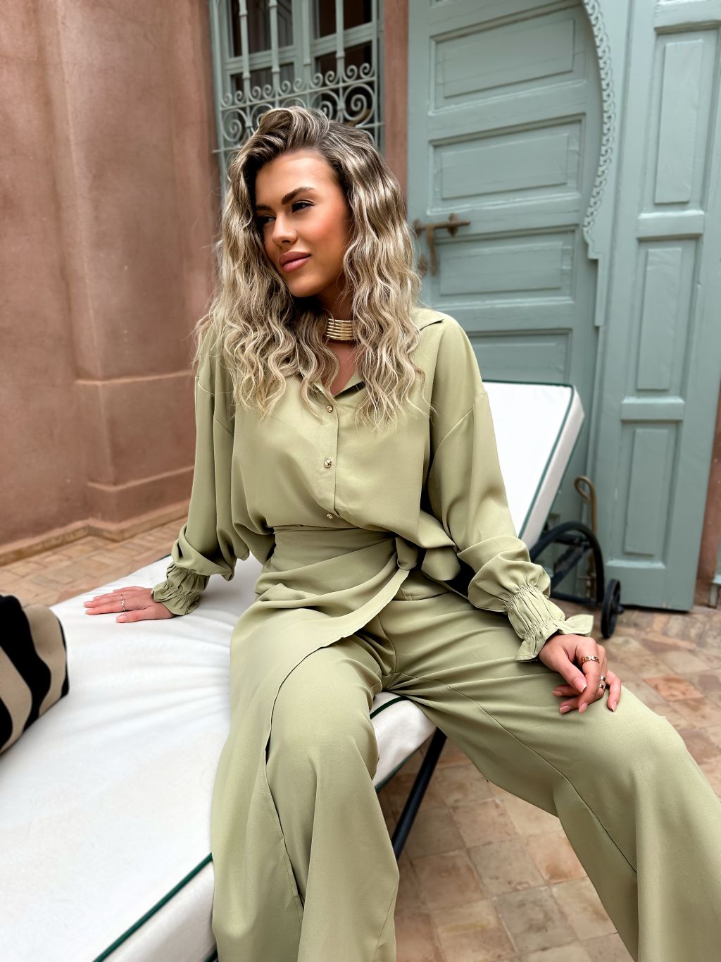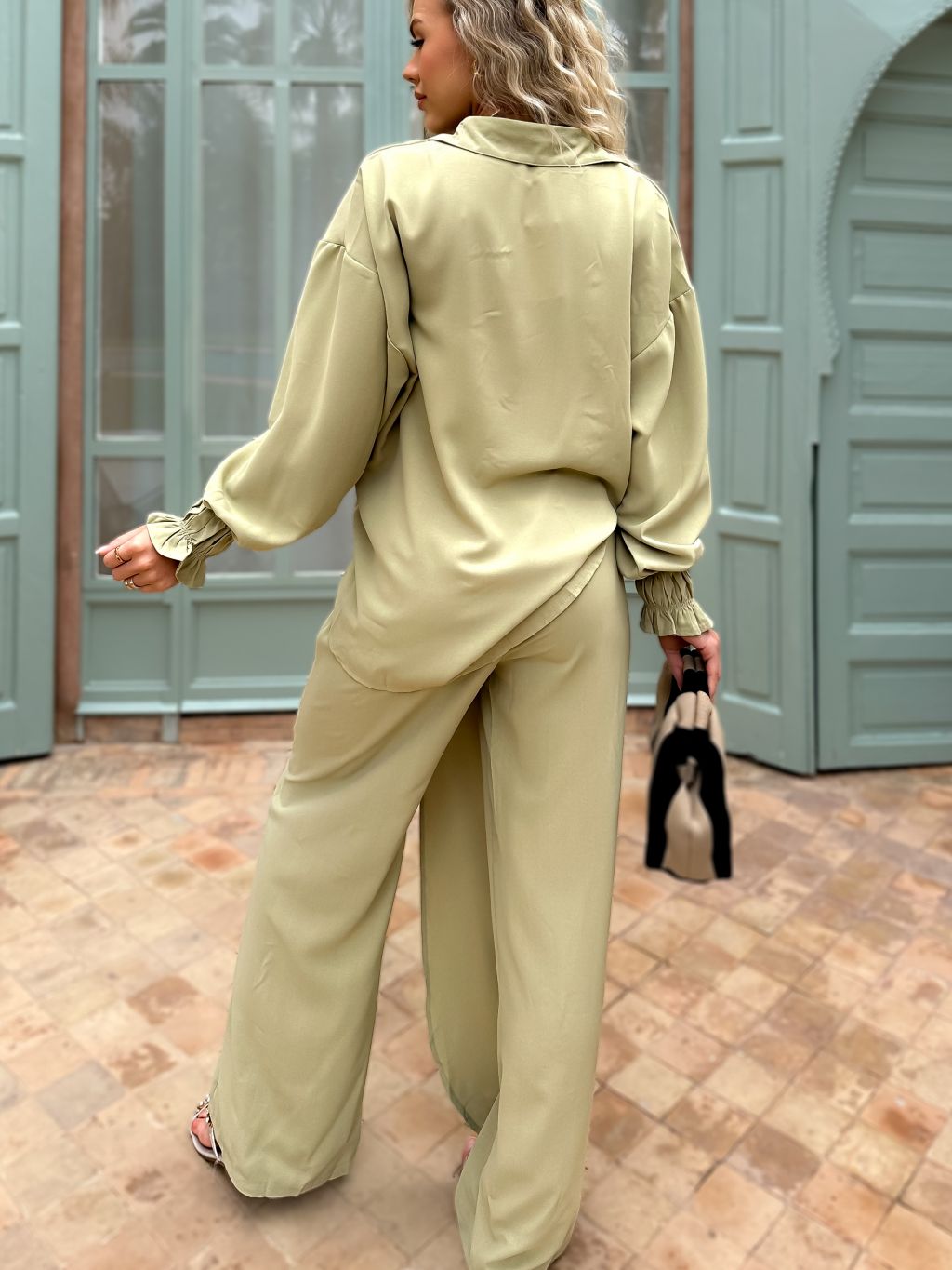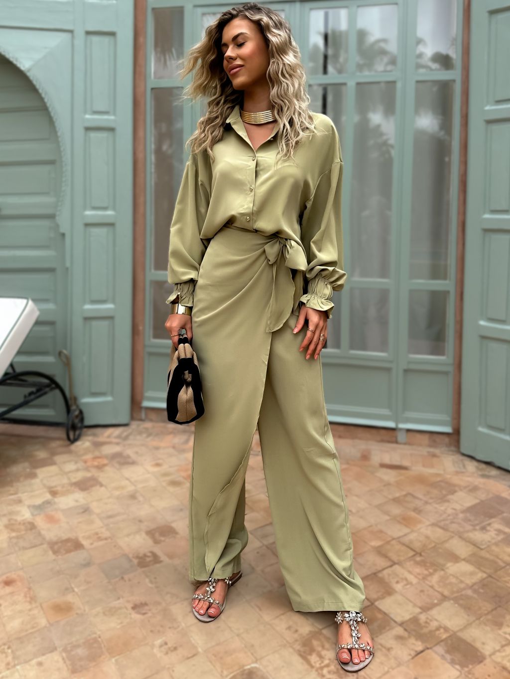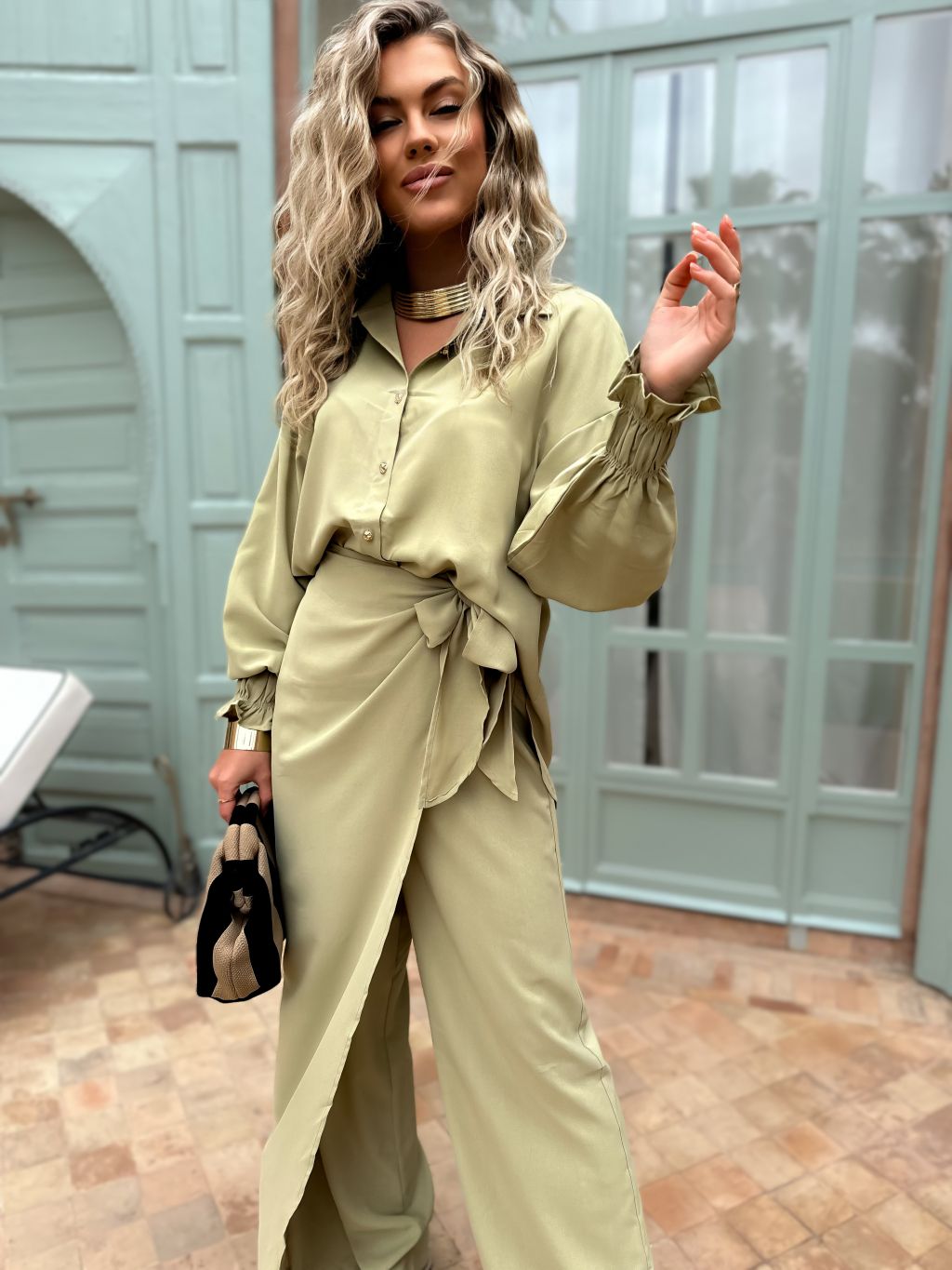 Zelený elegantný nohavicový komplet RIKENI s košeľou