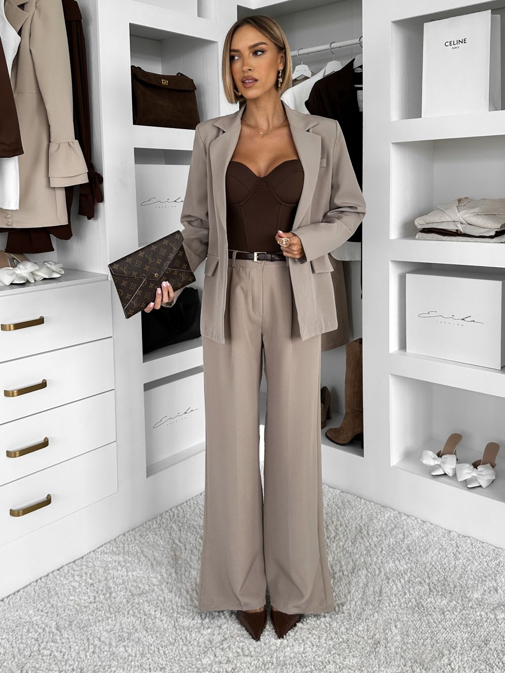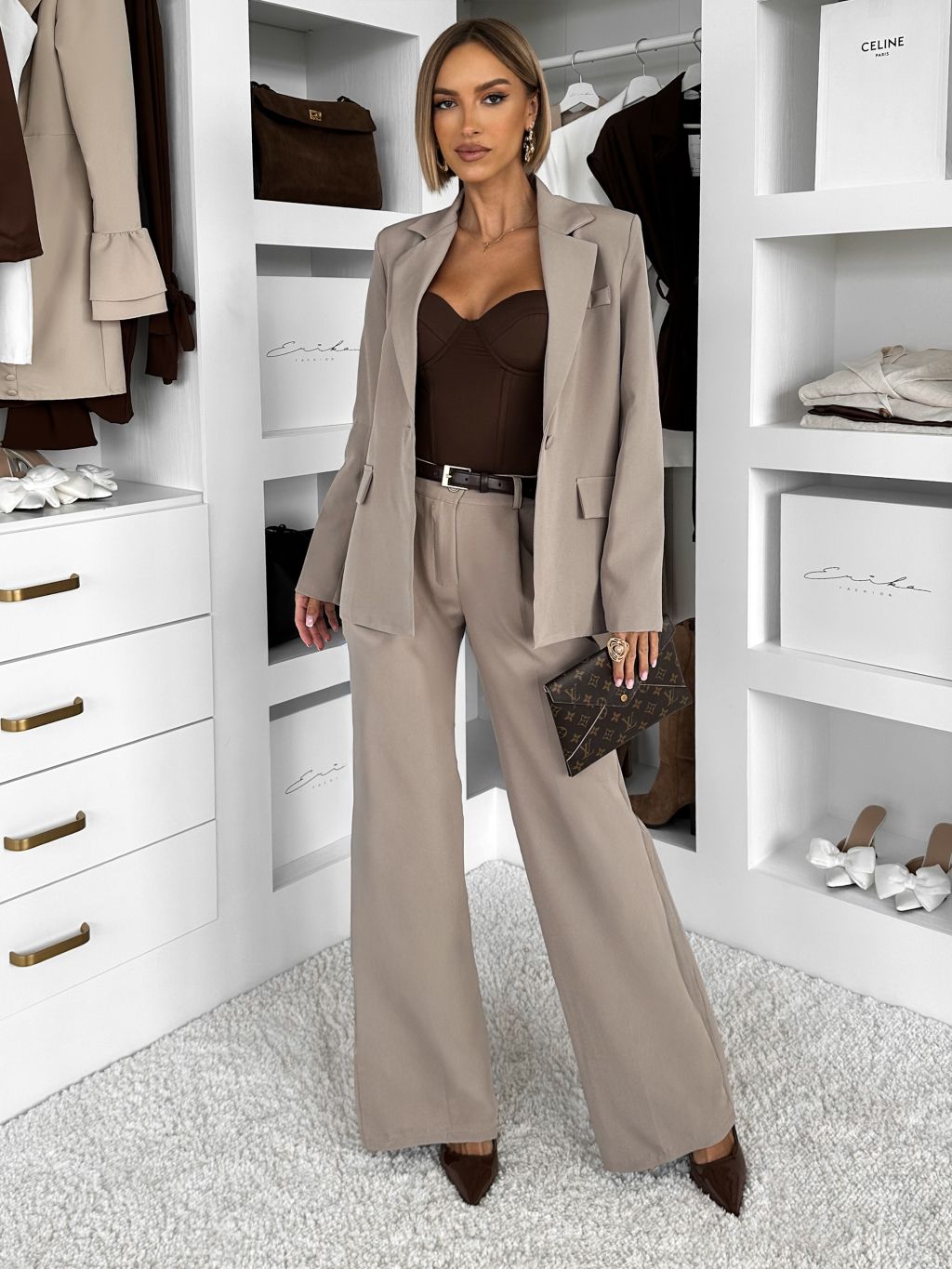 Béžový nohavicový kostým dámsky oblek CARISIA