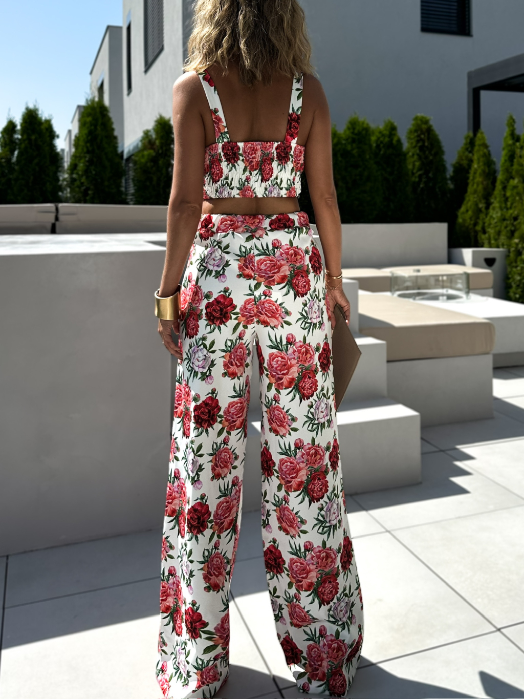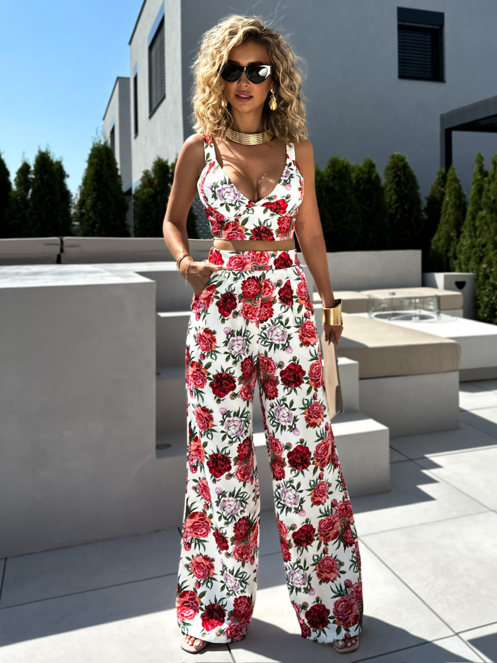 Biely kvetovaný nohavicový komplet KARYL s topom