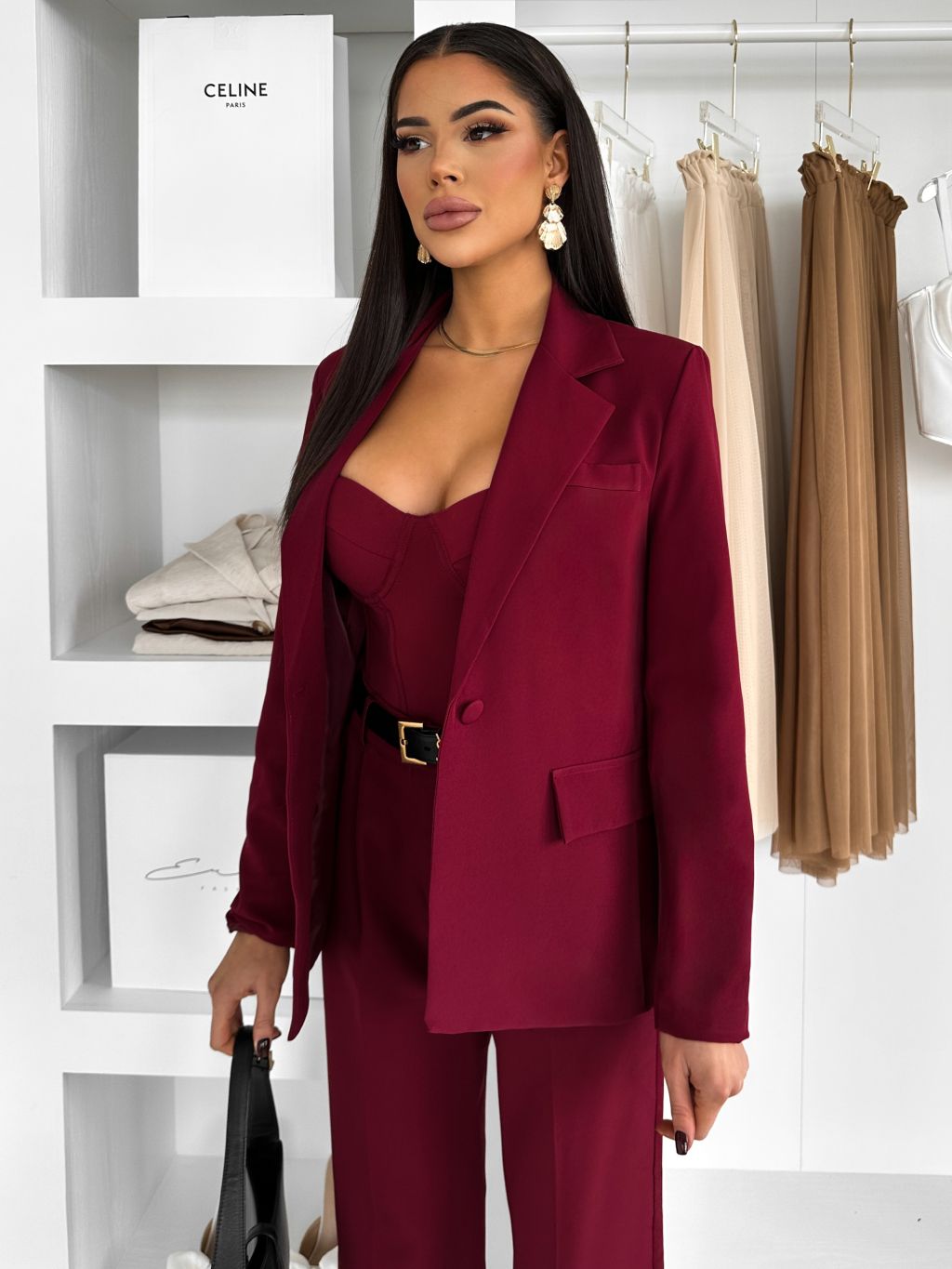 Bordó elegantný kostým dámsky oblek CARISIA