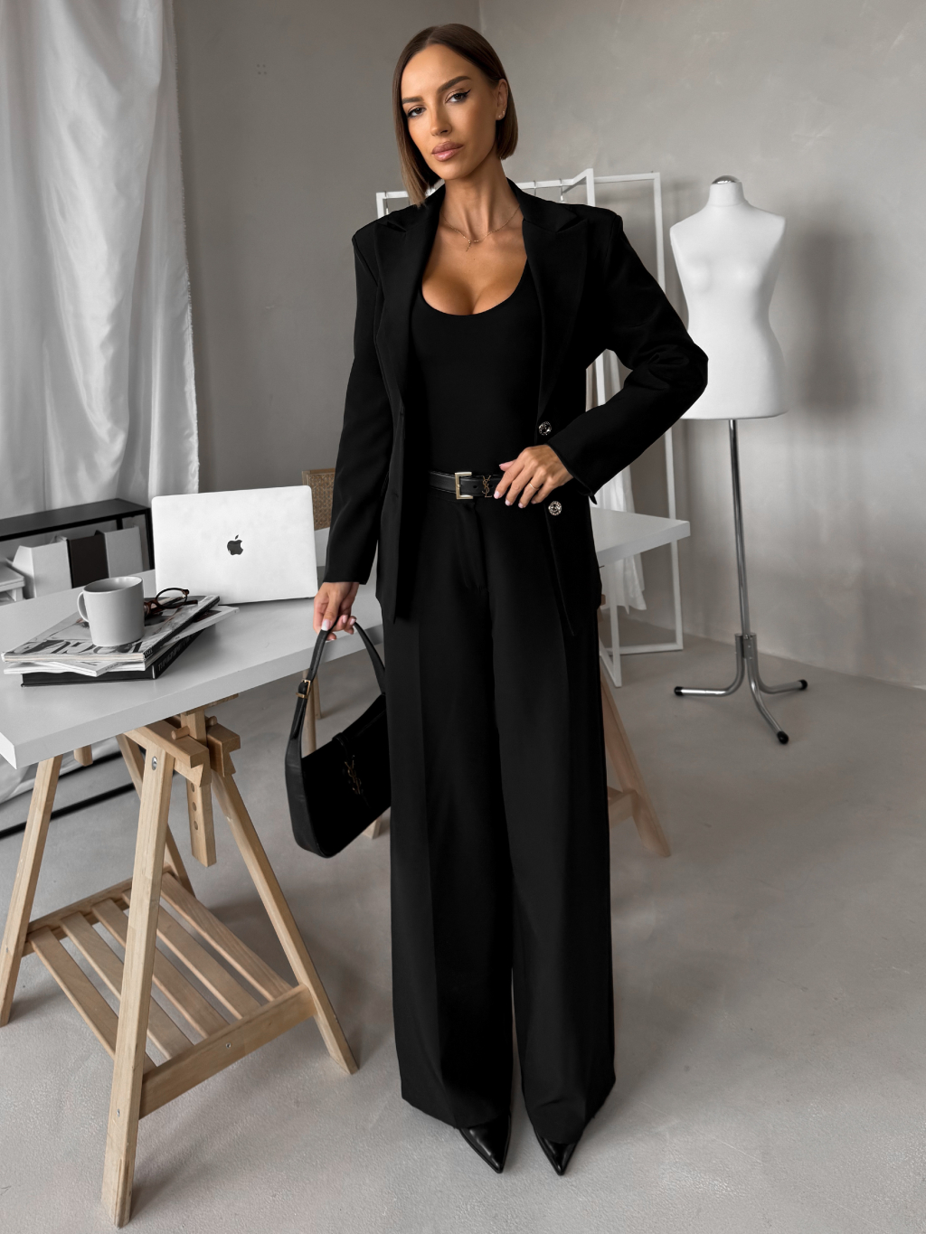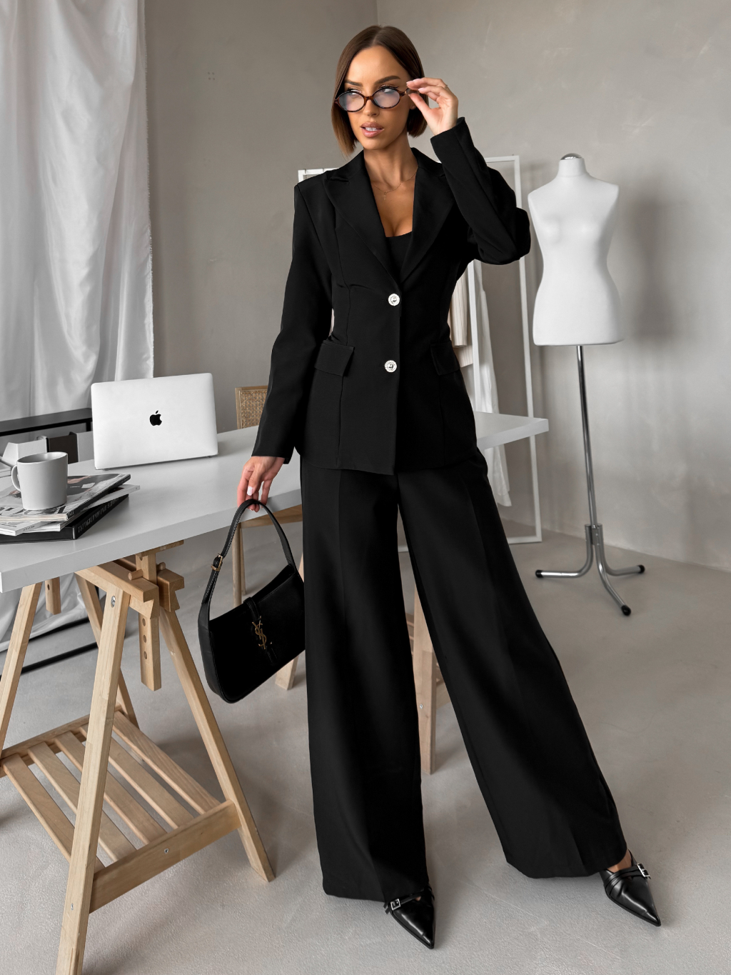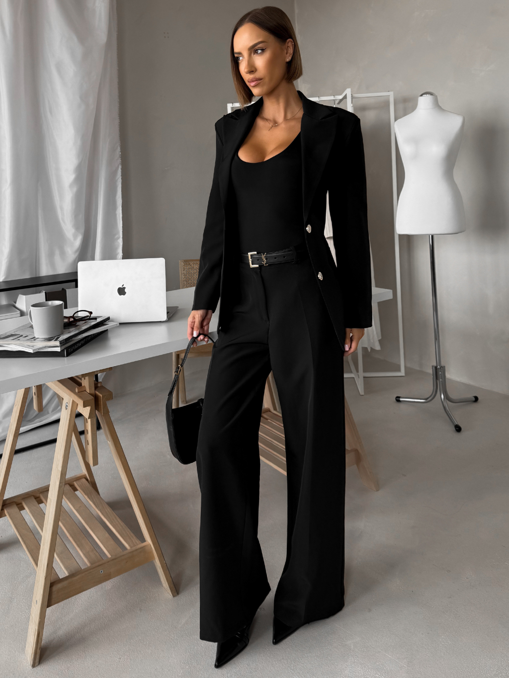 Čierny elegantný nohavicový kostým VIRELI do kancelárie