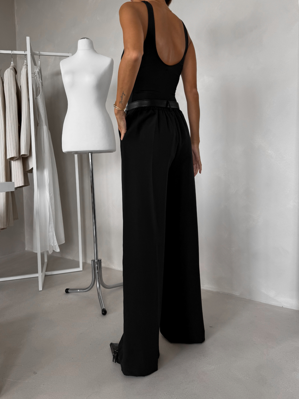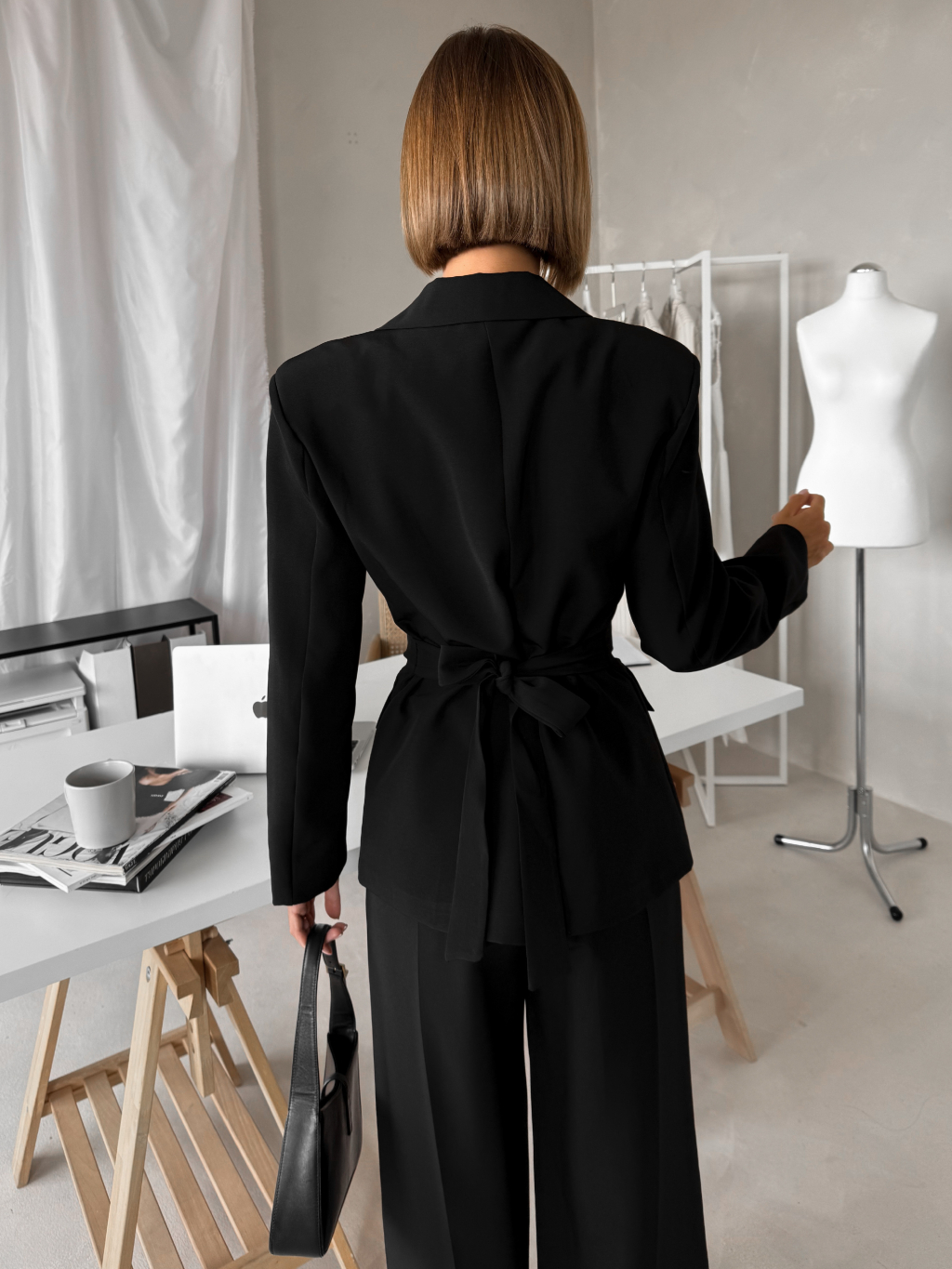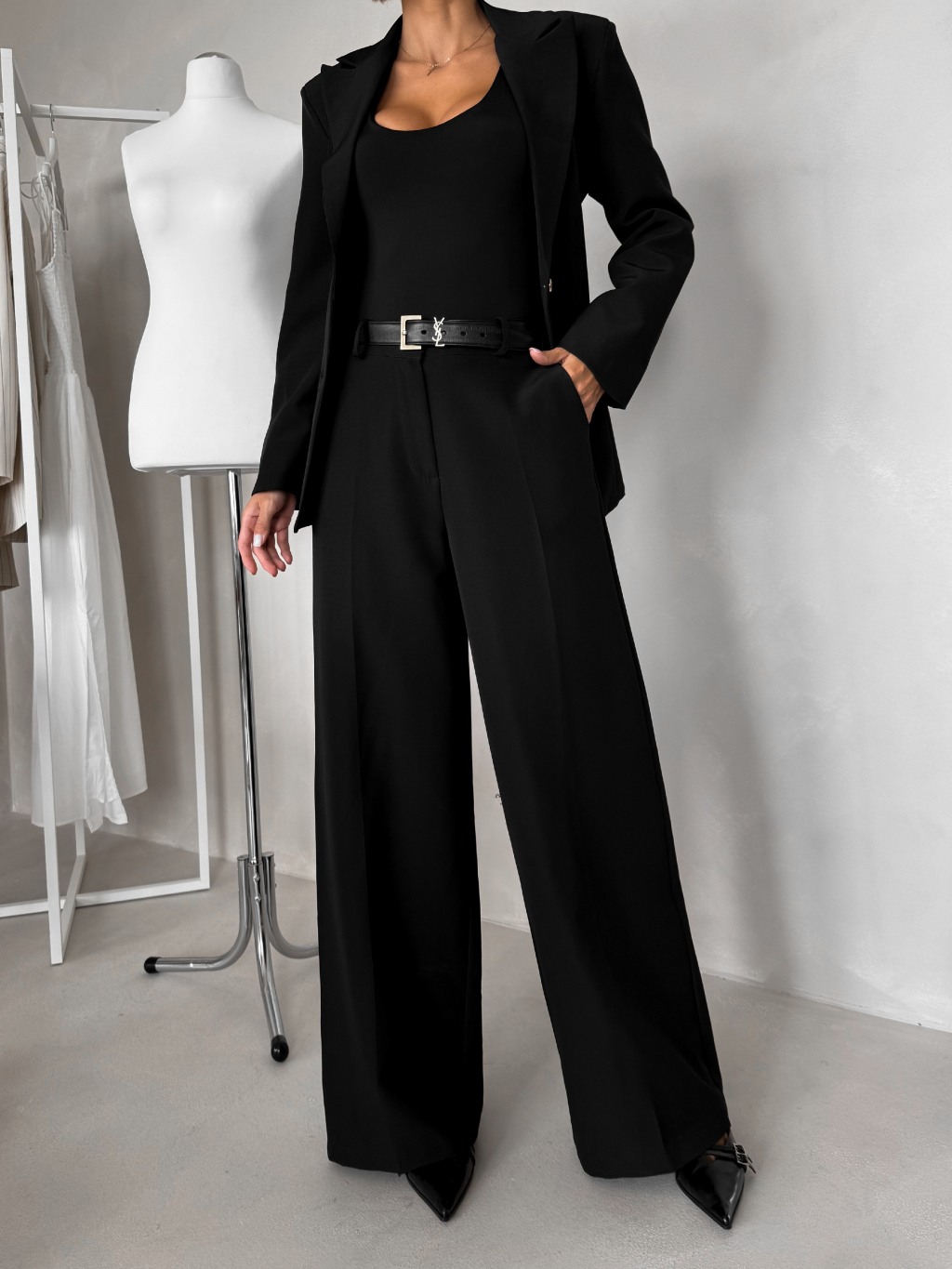 Čierny elegantný nohavicový kostým VIRELI do kancelárie
