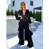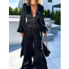 Čierny saténový spoločenský nohavicový kostým ZAVAHA