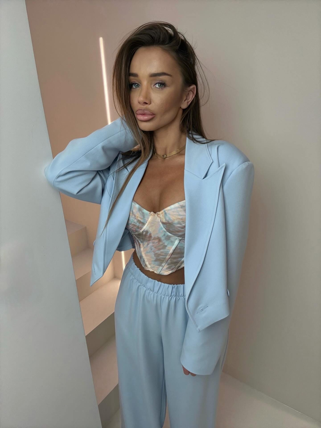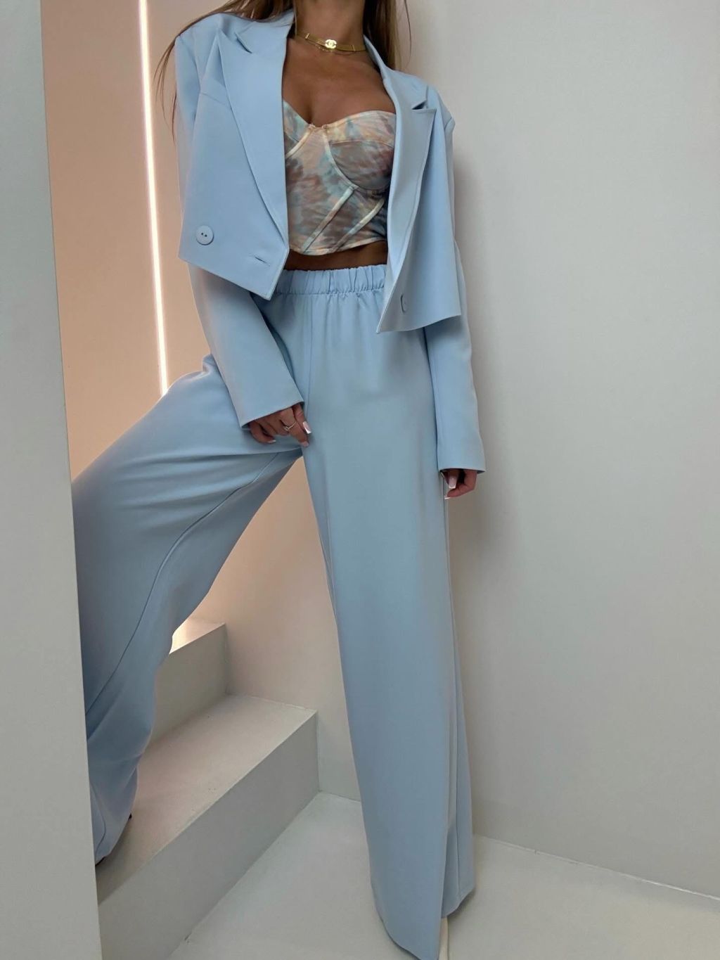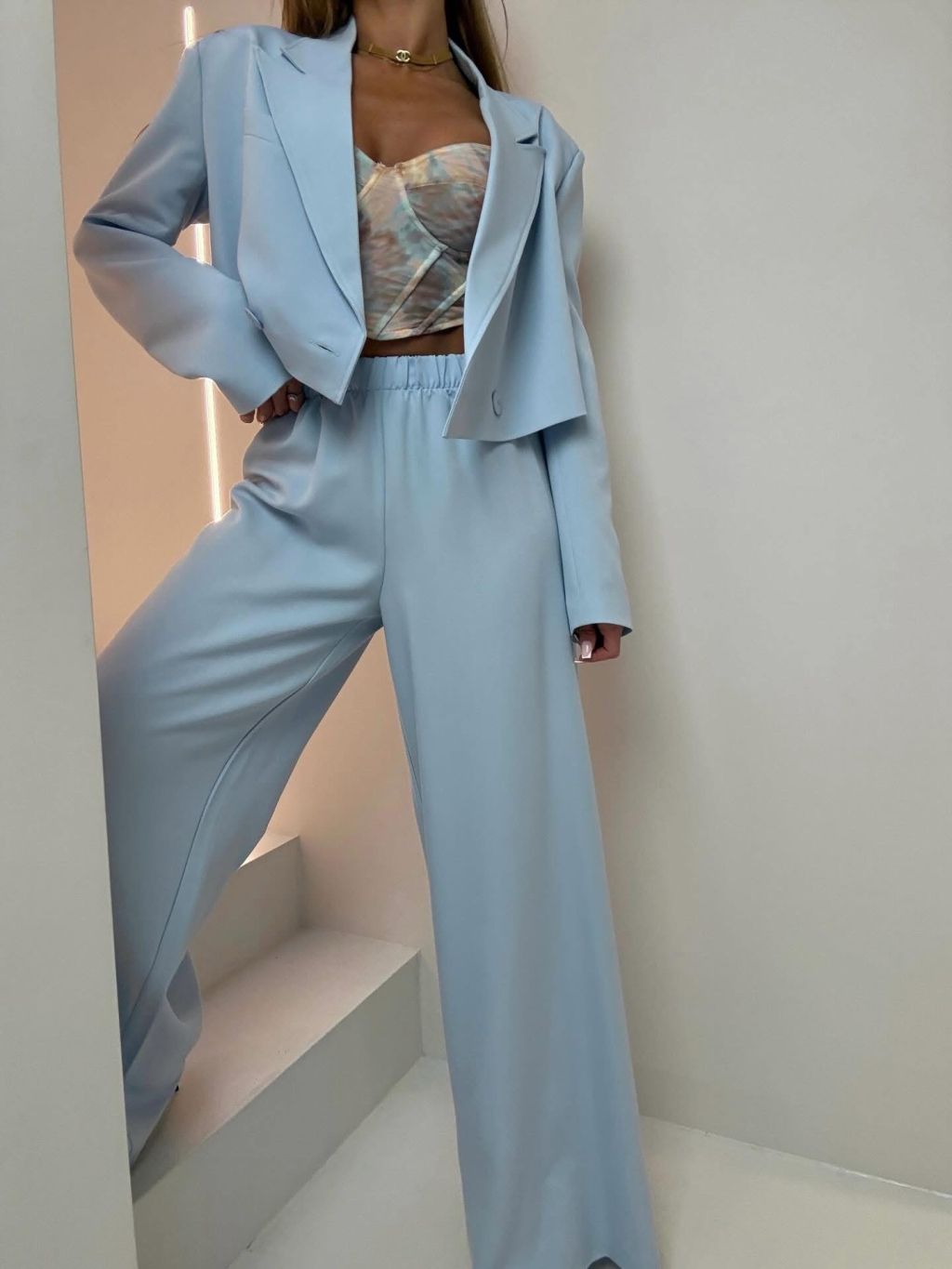 Modrý elegantný luxusný nohavicový kostým ZENYA