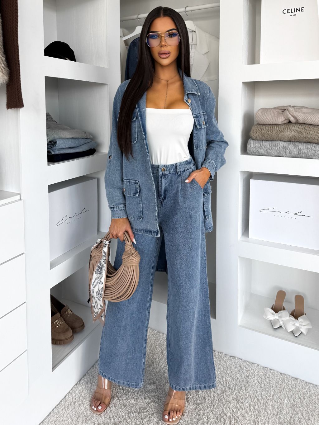 Modrý nohavicový džínsový denim komplet ZYLORA s košeľou