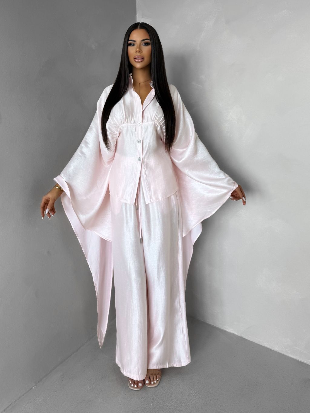 Ružový nohavicový dlhý elegantný komplet IMPACT