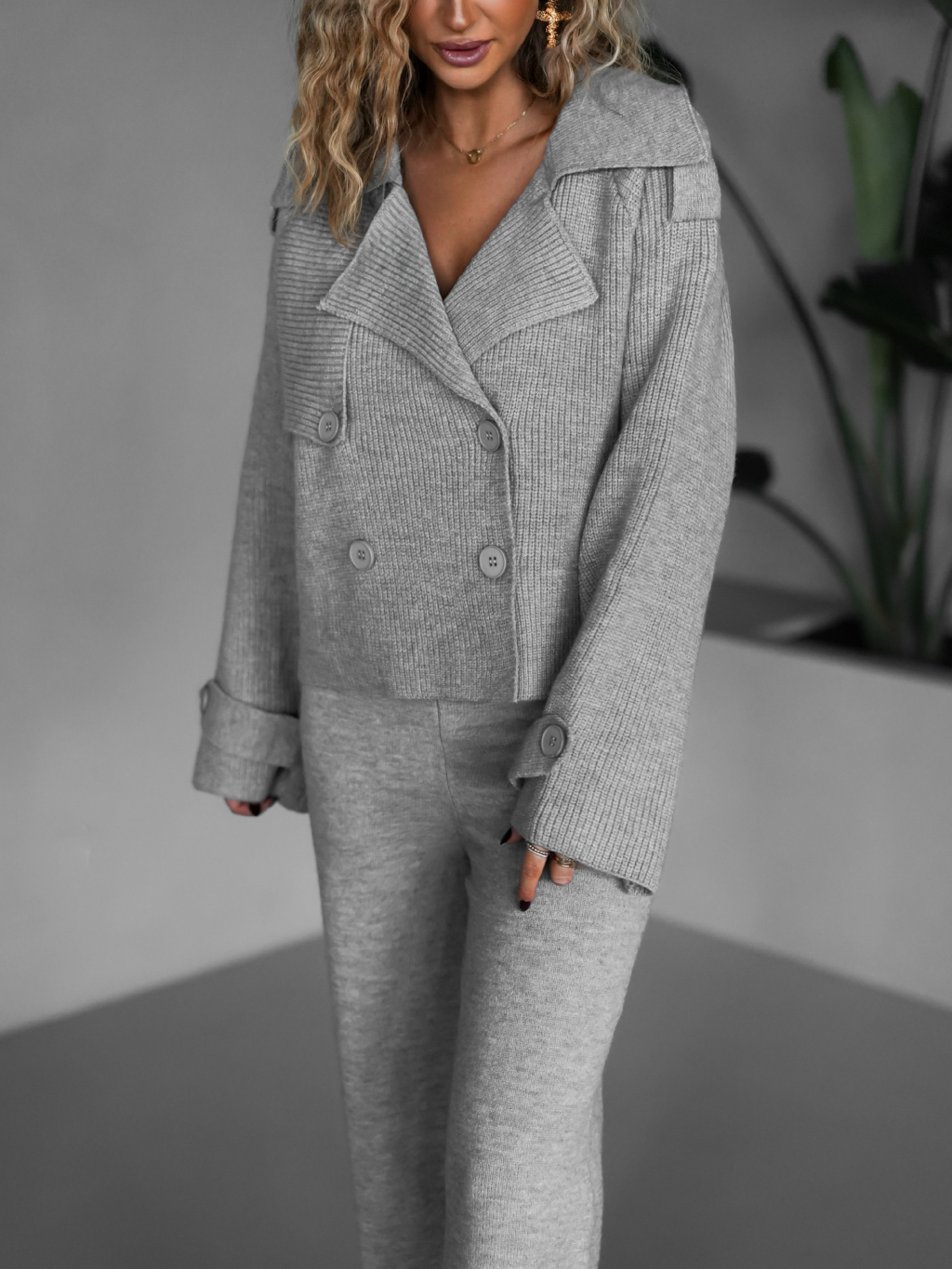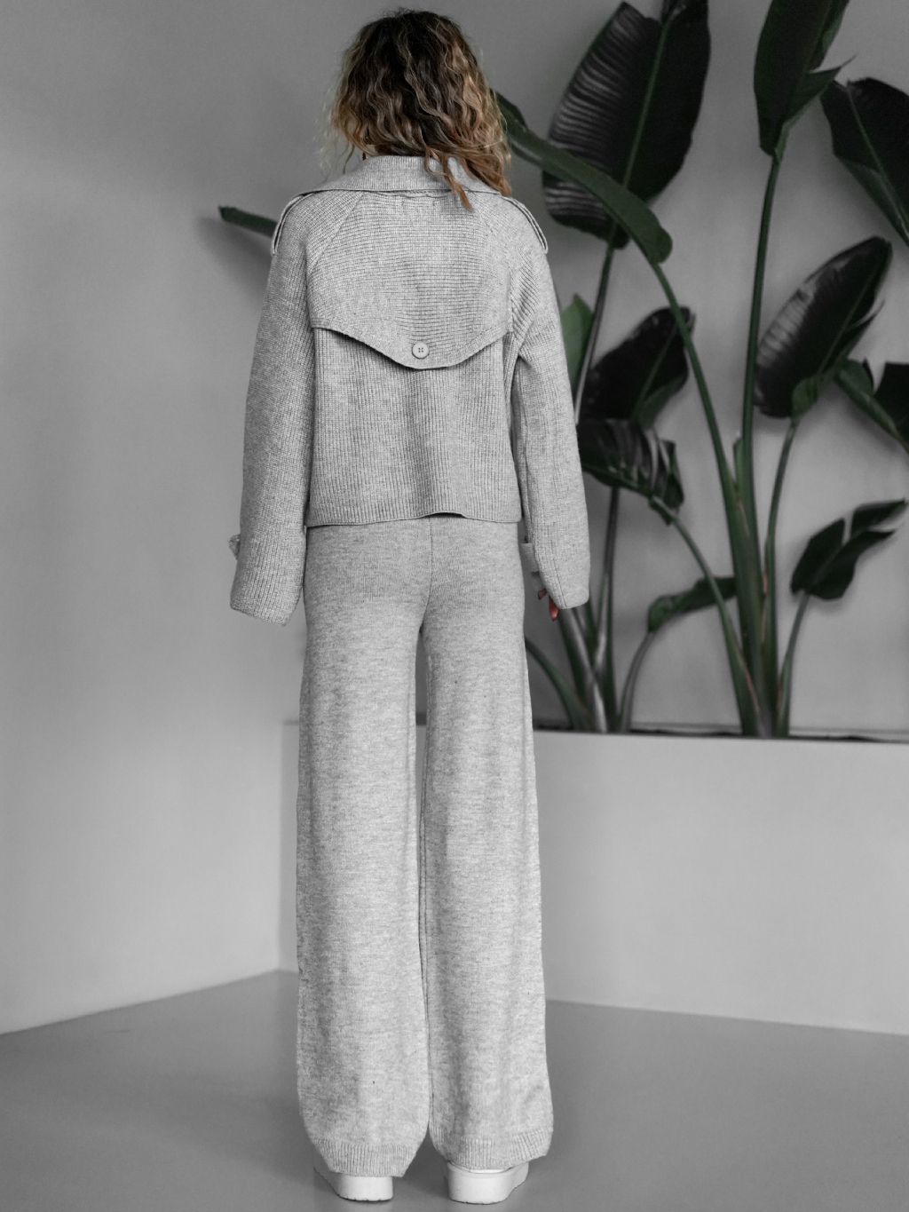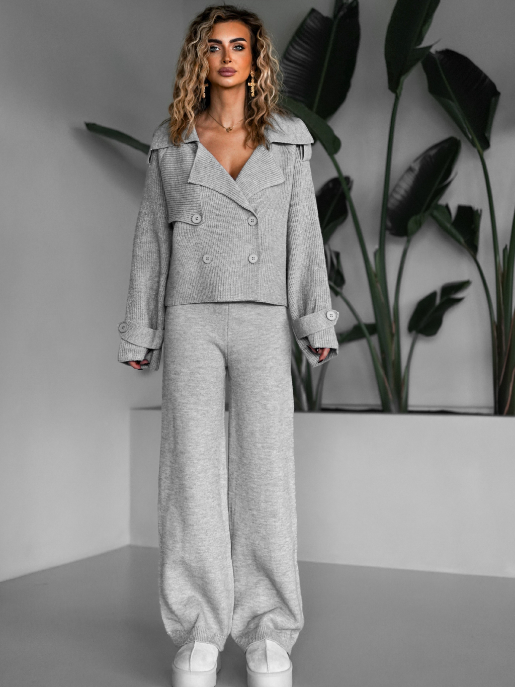 Sivý svetrový nohavicový dvojradový komplet HERKY