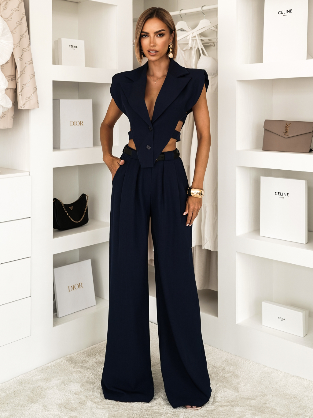 Tmavomodrý elegantný nohavicový kostým ARVENOX