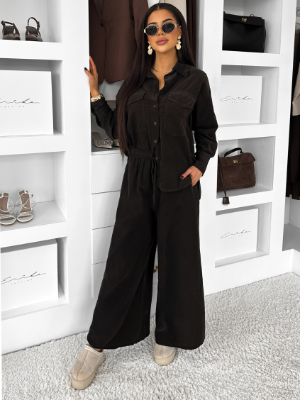 Hnedý elegantný dlhý komplet set ARIVELLE