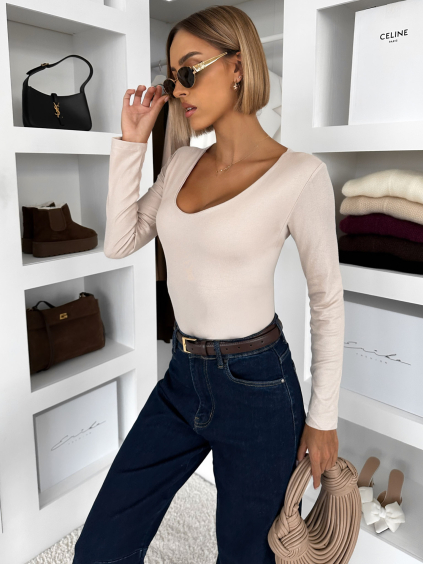 Hnedé elegantné body rolák UNIDRO s dlhým rukávom