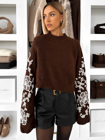 Hnedý pletený dlhý sveter šaty MAGLIO