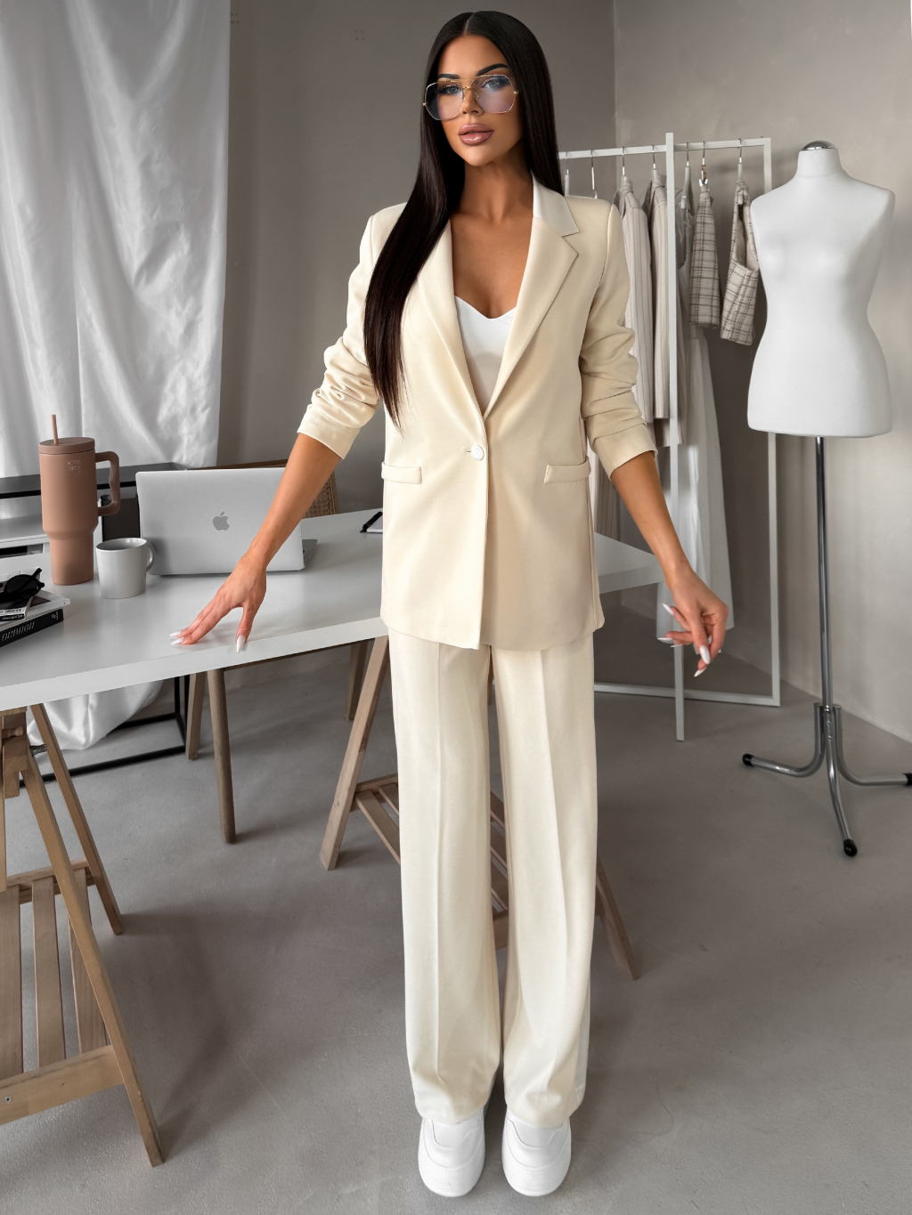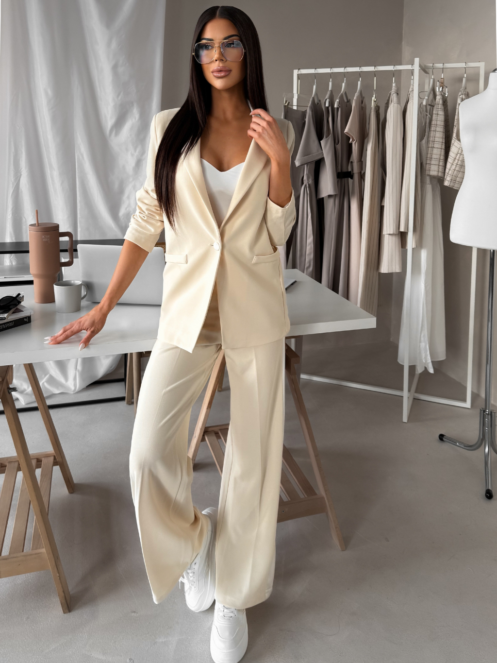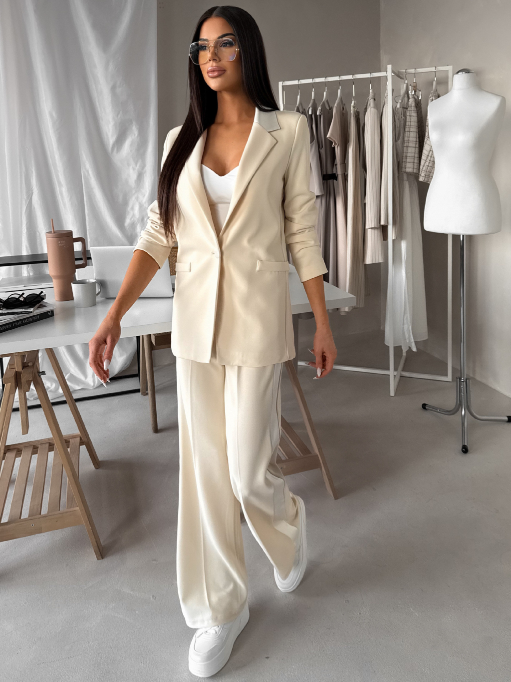Krémové oversize štýlové sako NAREX
