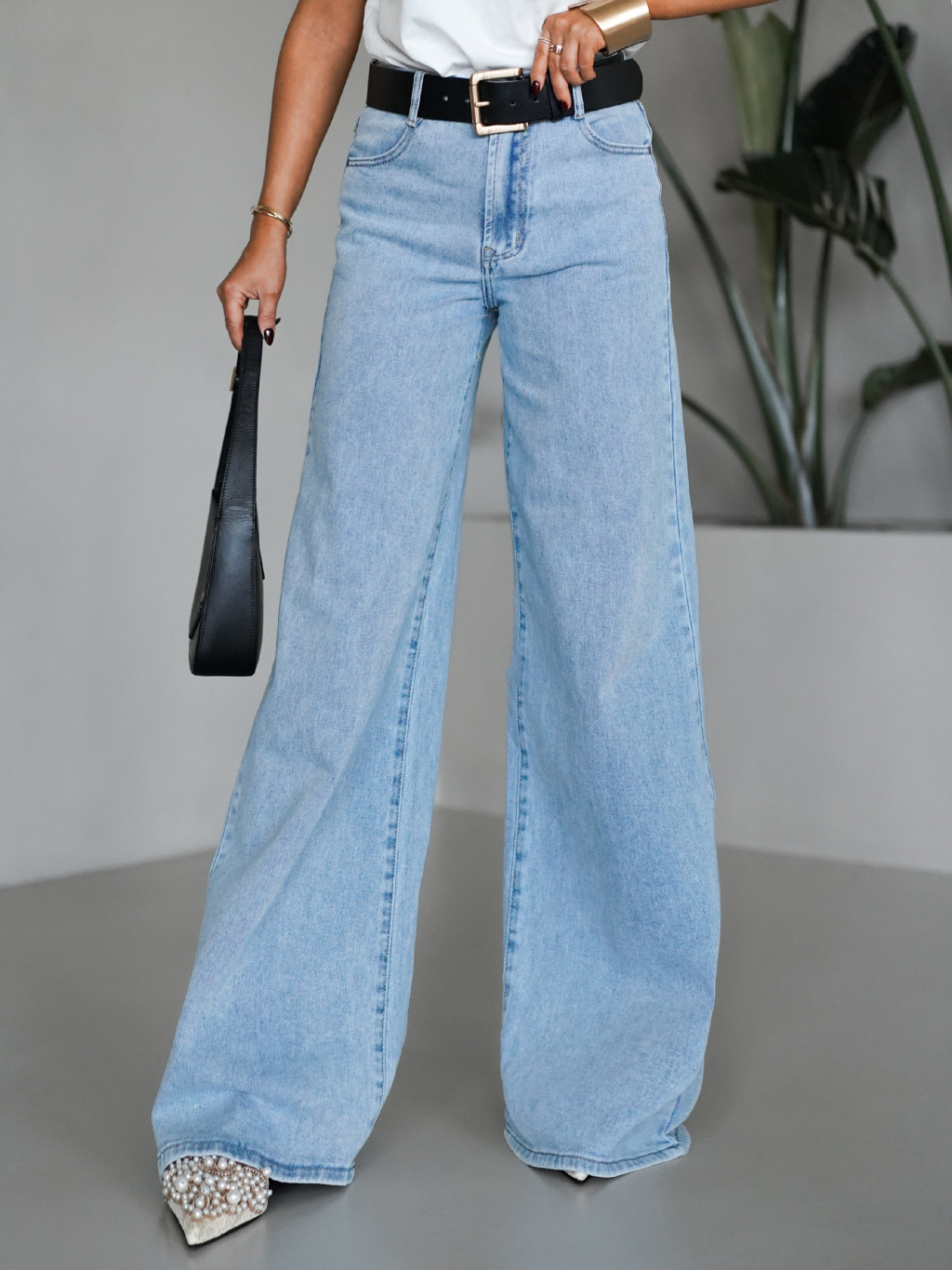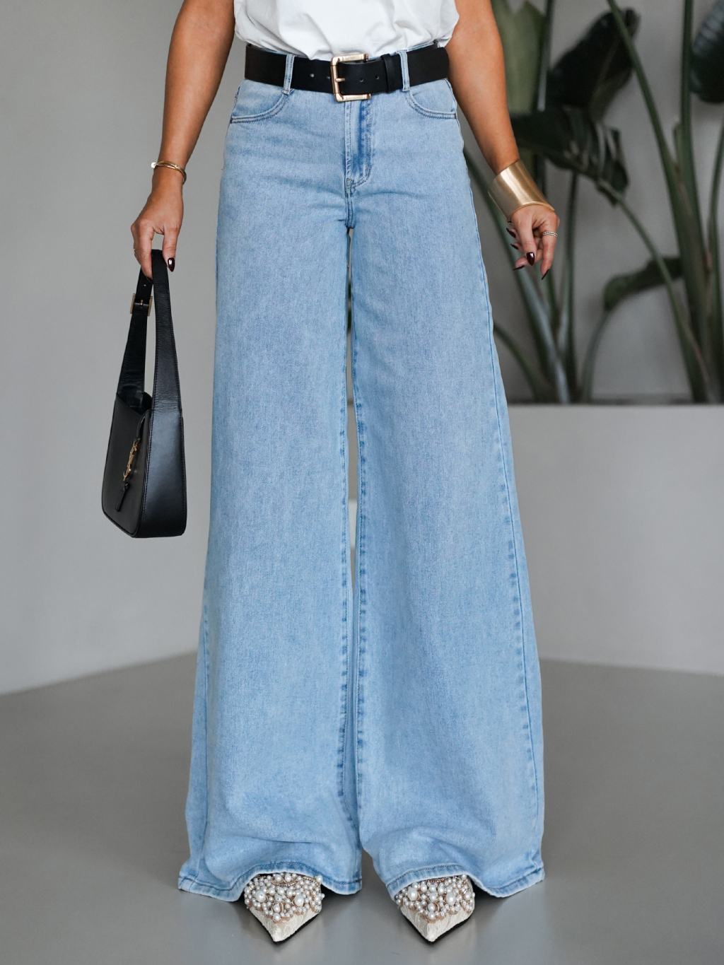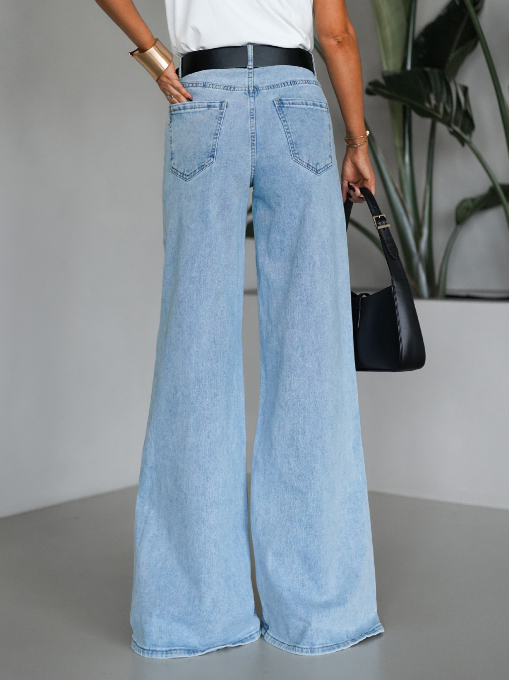 Modré široké wide leg džínsy FOLOS