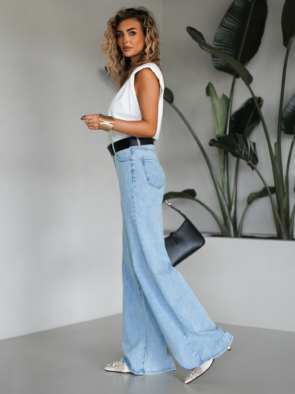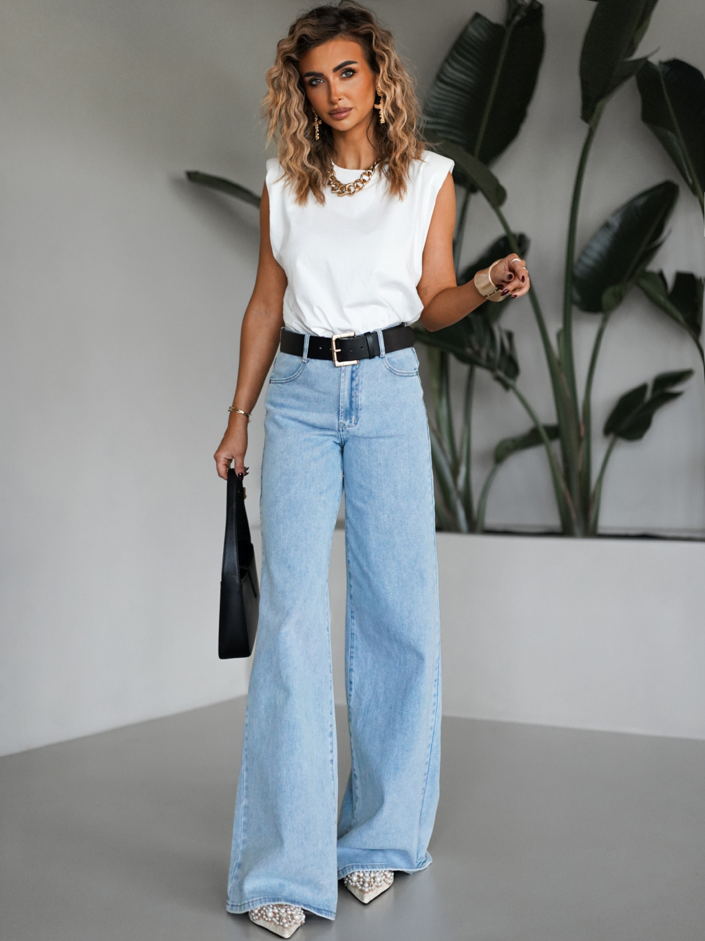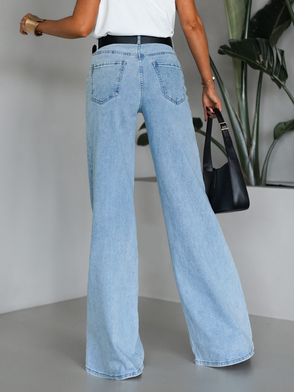Modré široké wide leg džínsy FOLOS