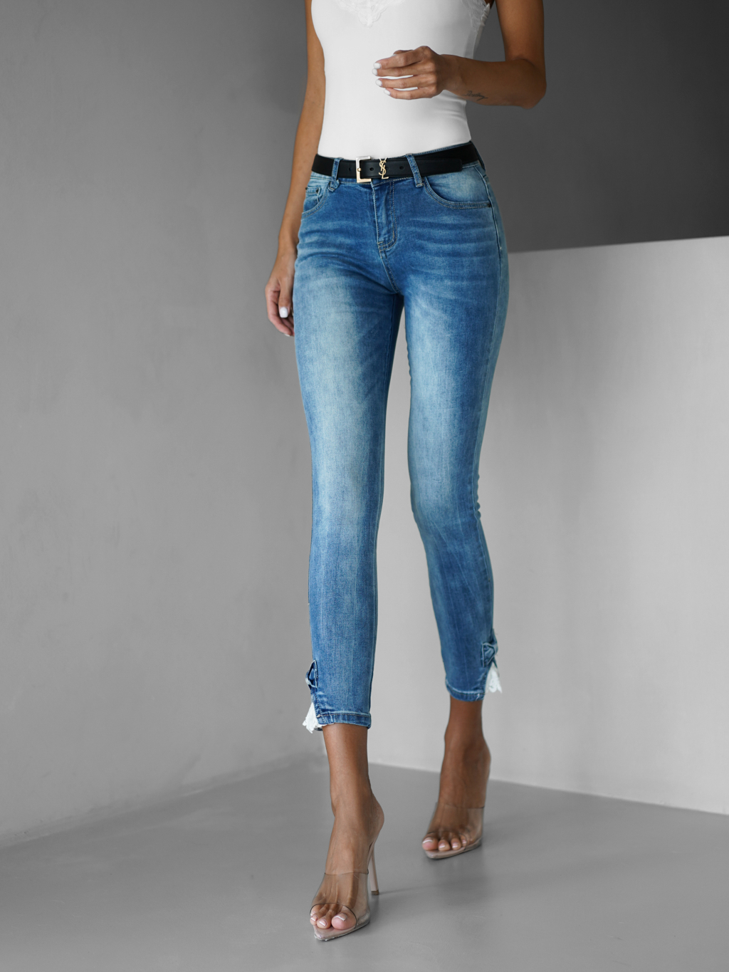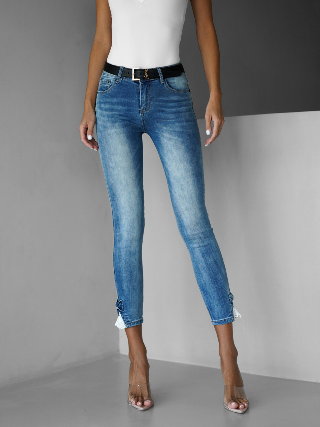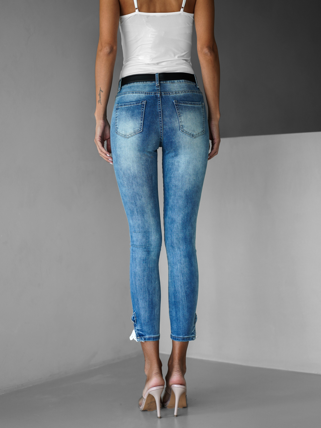 Modré slim fit úzke džínsy DAFNI s mašličkami