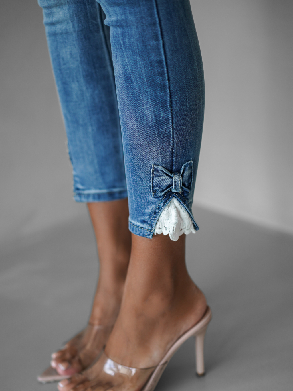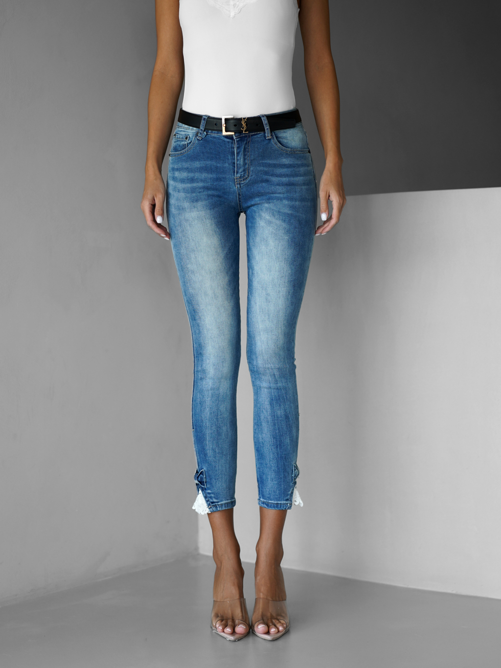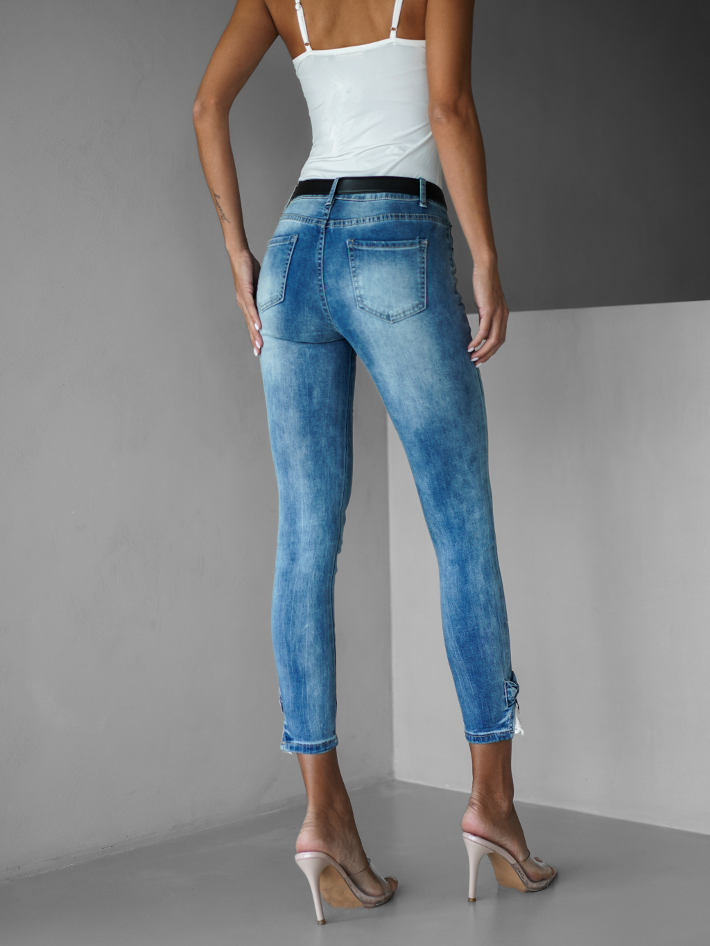 Modré slim fit úzke džínsy DAFNI s mašličkami