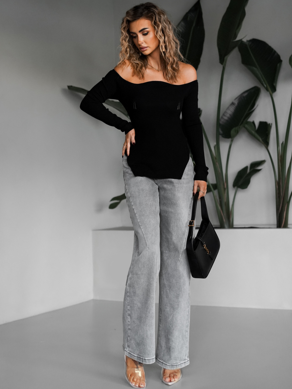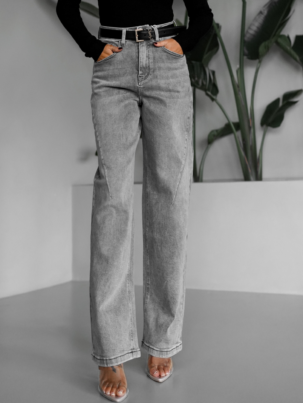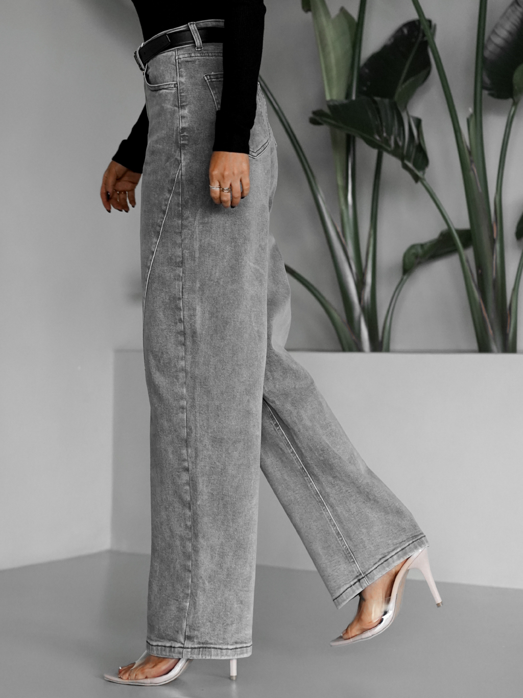 Šedé široké mom barel džínsy ANASY